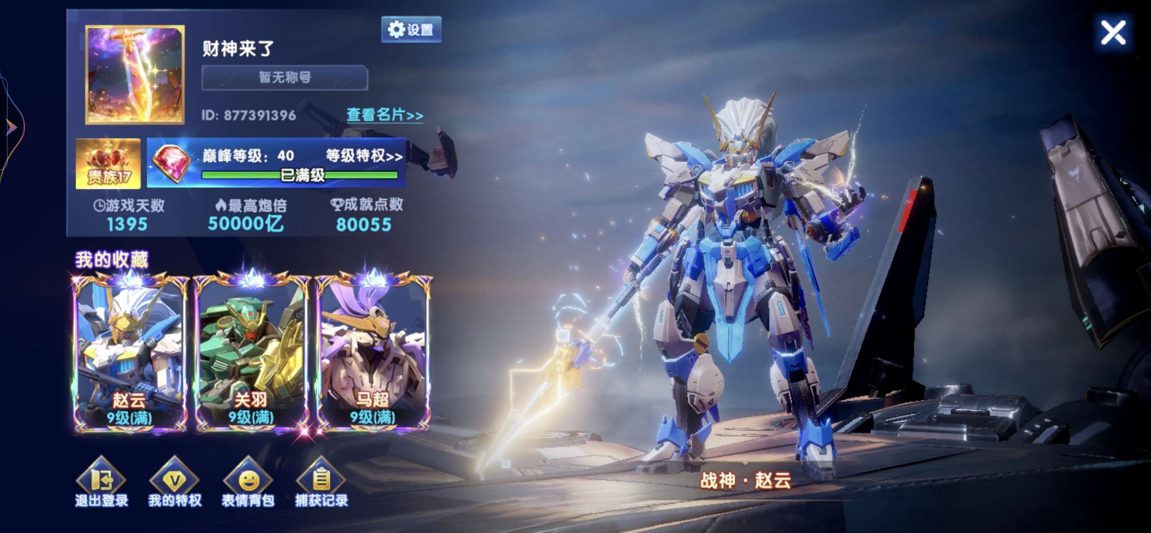 极品号官方 捕鱼大作战贵族23 机甲十五套 巅峰(满级) 炮位60000(满级)圣器(满级)位600