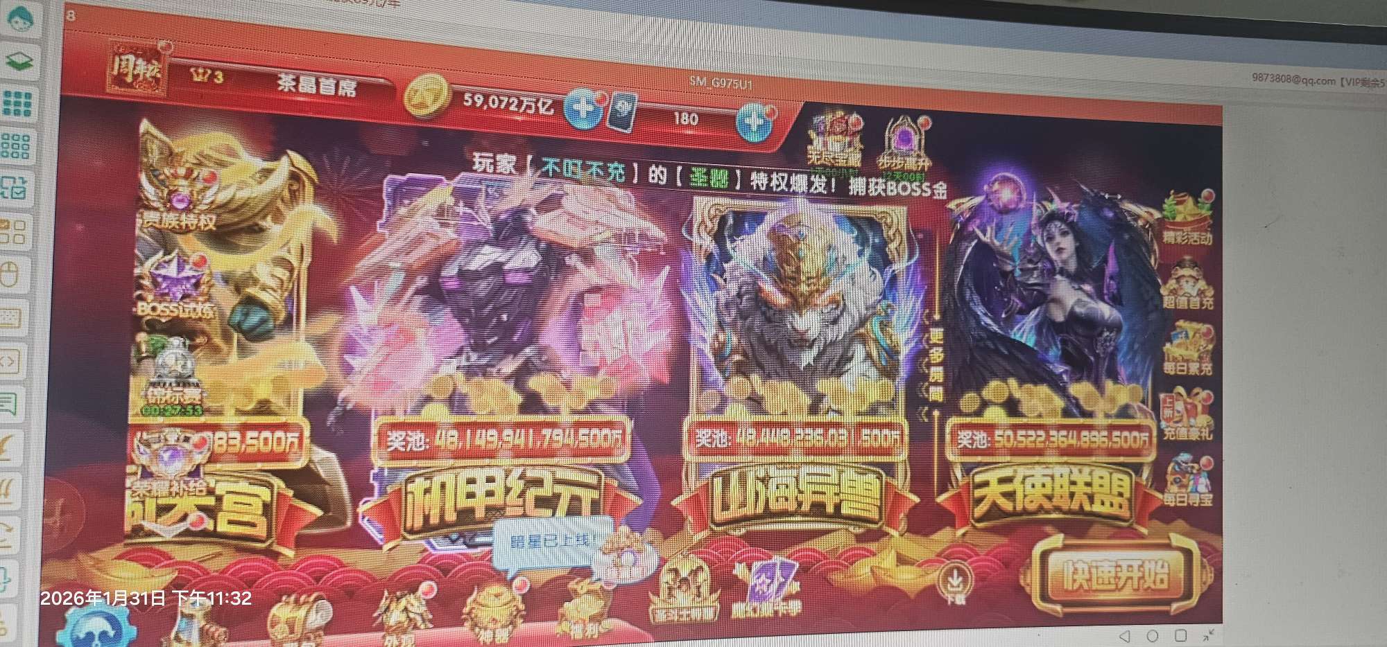 无绑v2 5000炮 30000万亿 狂暴2000+ 巅峰15 道具充足上线领双翅膀