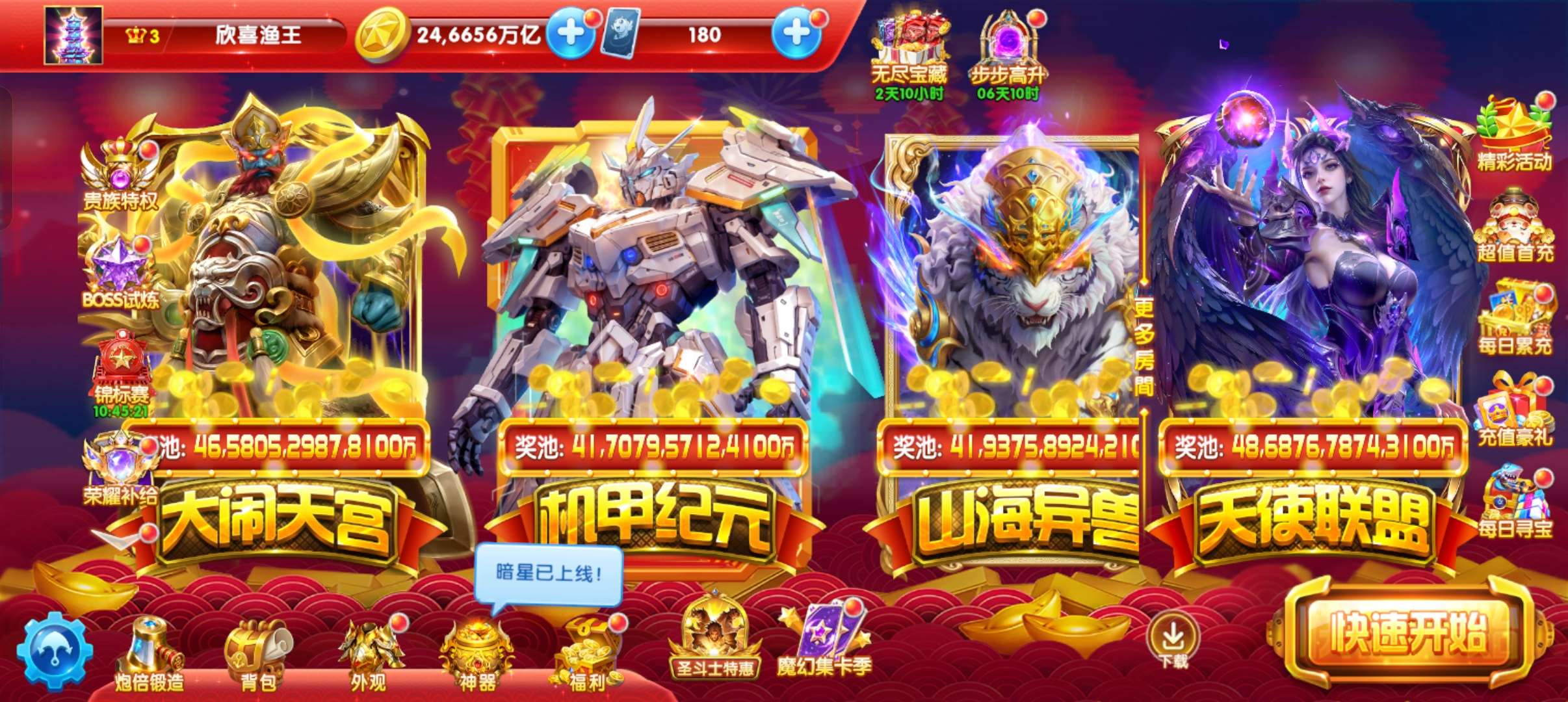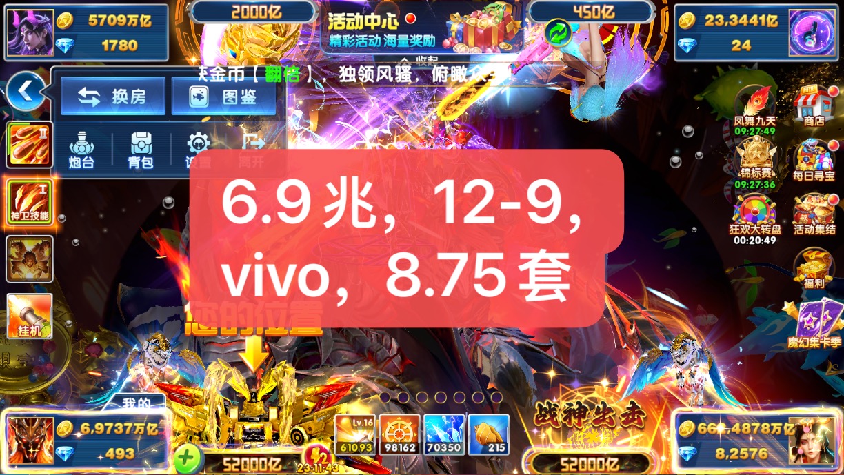 捕鱼大作战贵3带机刀手甲15000亿炮20兆金币纯玩不带号
