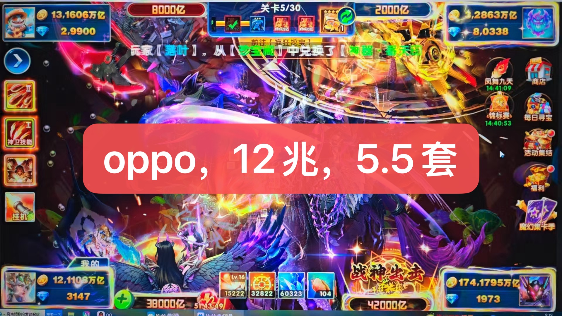 oppo极品账号,救济金2兆,圣器结束13套,组合技,天使一击,双神卫,应有尽有,24%翻倍