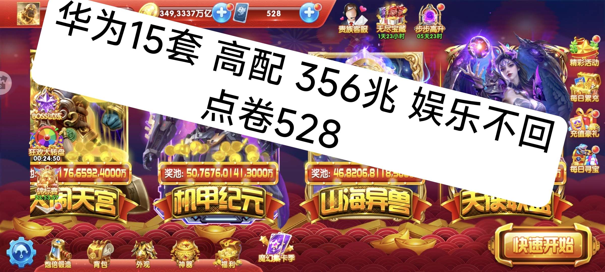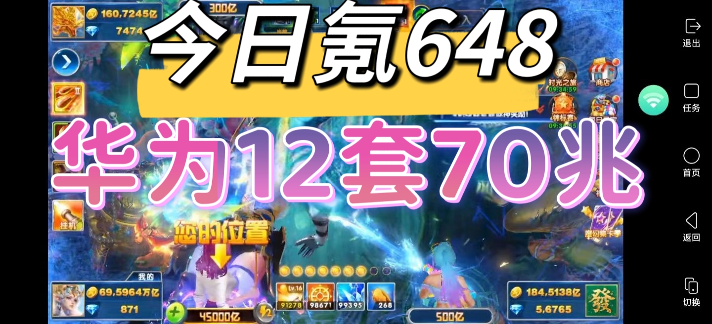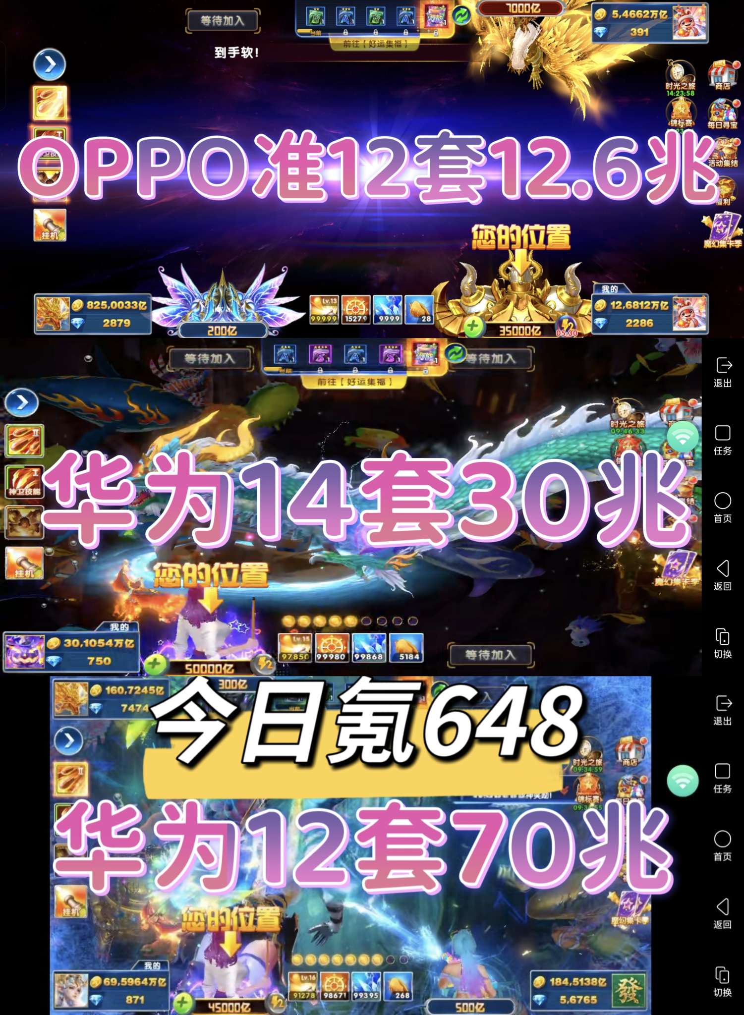 华为12套 特价出金币70兆 今日充值648,来正常打,不拖号的。