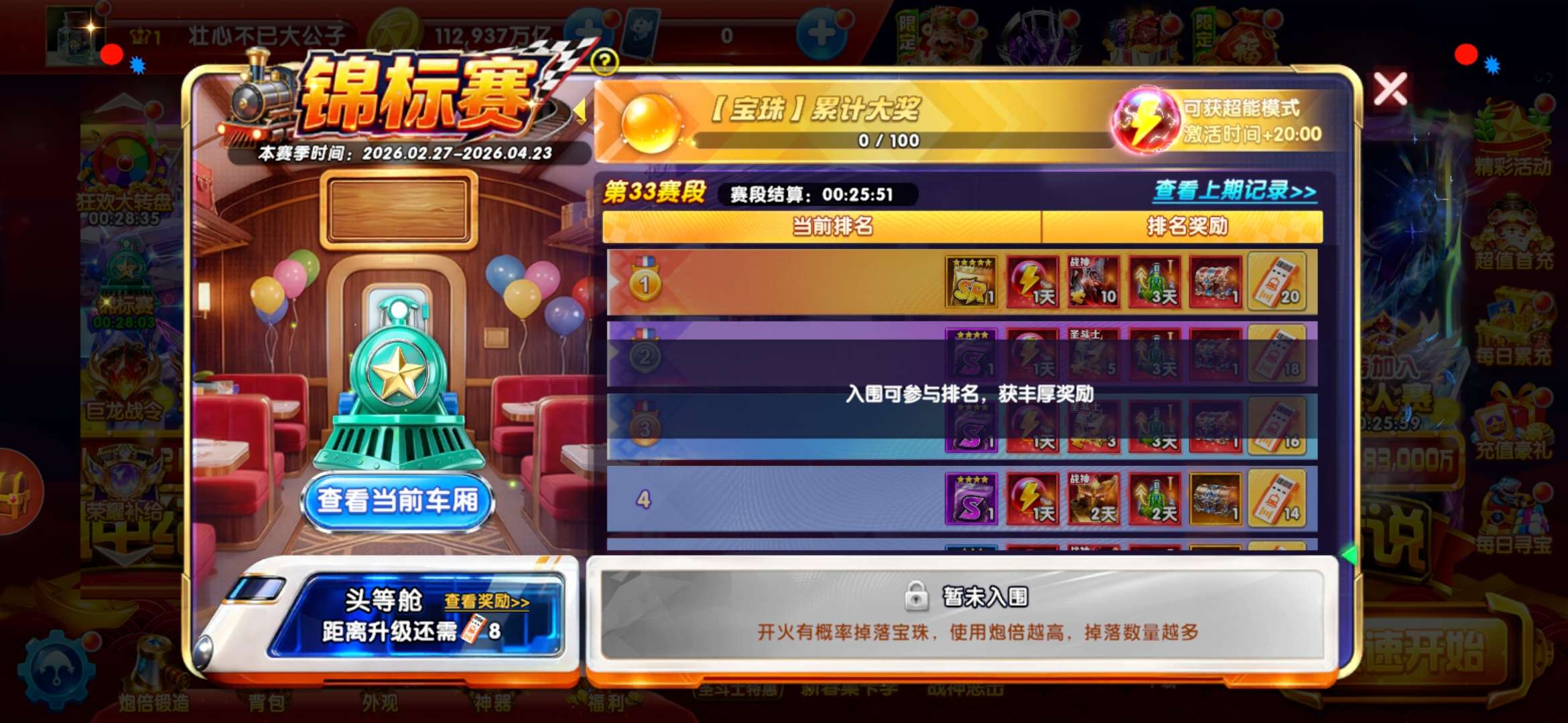 编排1910号小米无绑80炮14.5兆巅峰25级,庆典没动