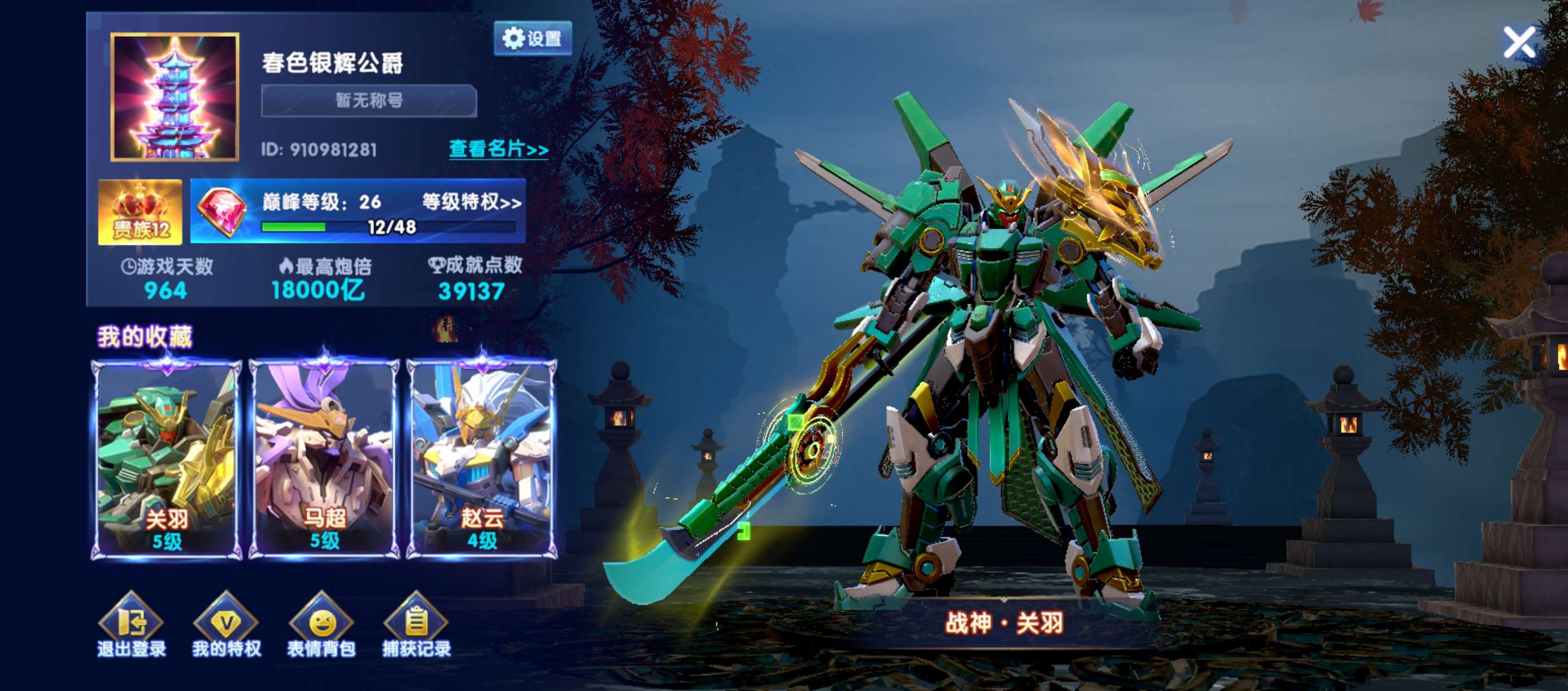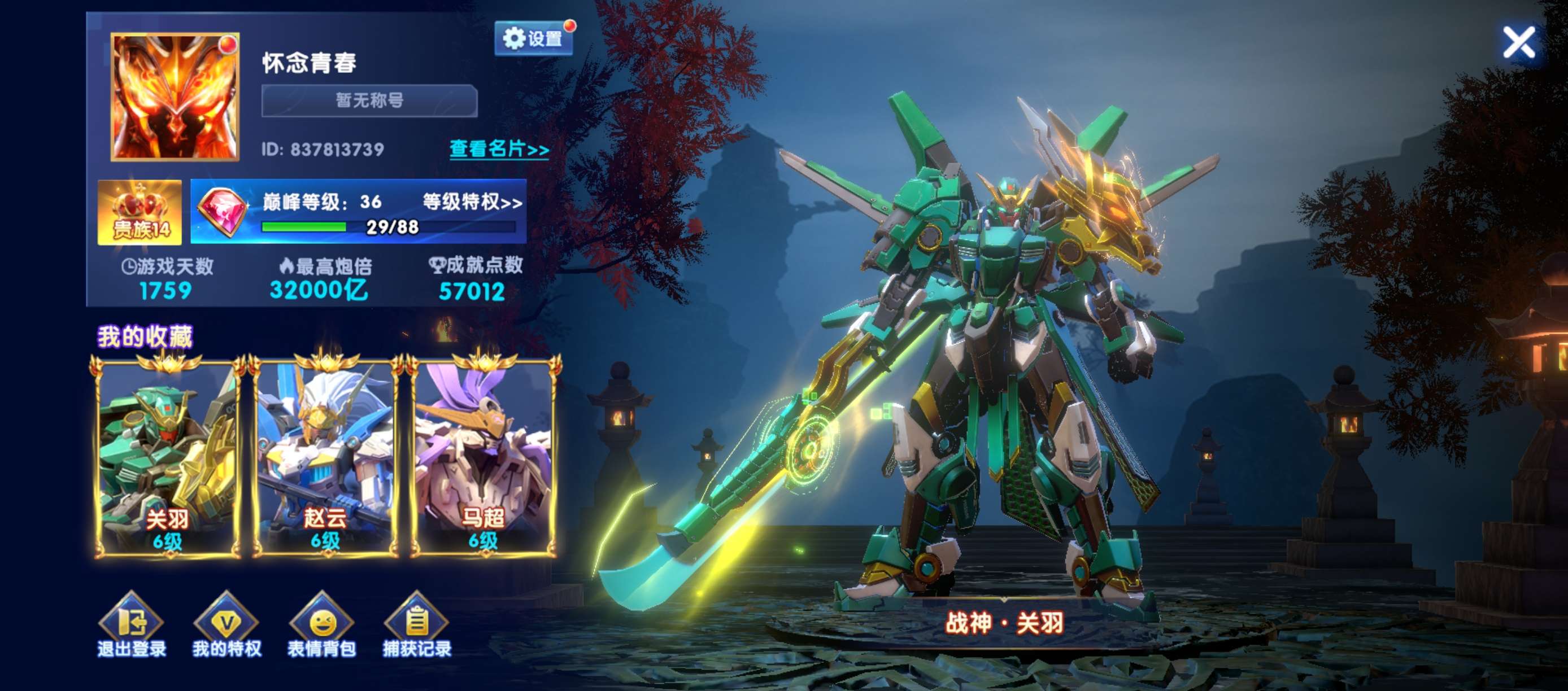 捕鱼大作战 贵族15 52%返卷 金币40兆 准11套(现在9套半)西游差1级 诸葛亮差6碎片升套
