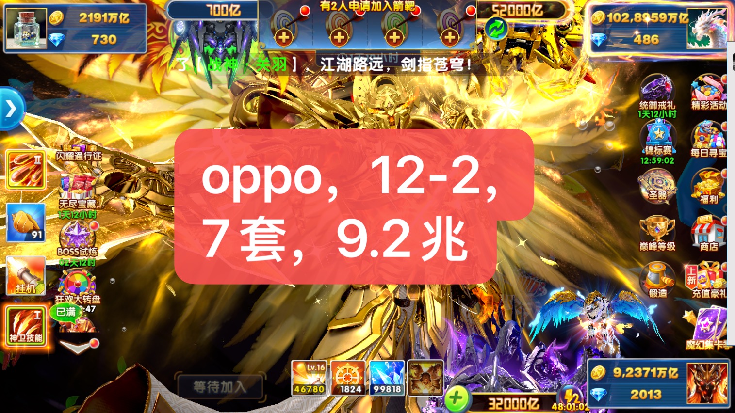 贵族16 十几套战神 38000炮台 补助金1.5万亿巅峰40