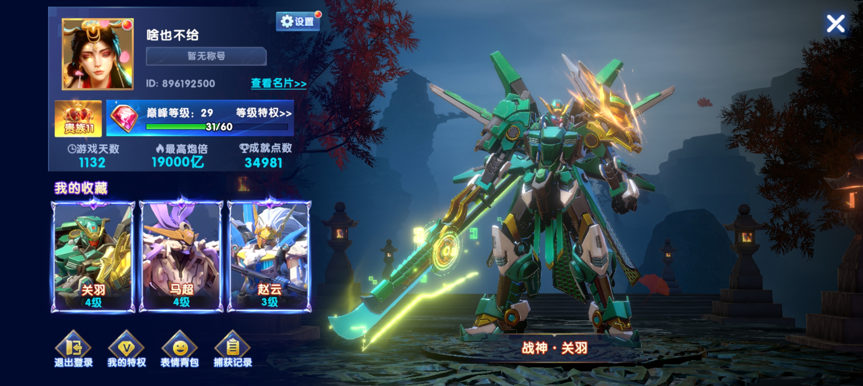 安卓华为-贵族25-特权12-救济2.19兆-13.5套-加成1481-三国999766-有天使套-朱雀白虎出战-换绑一切