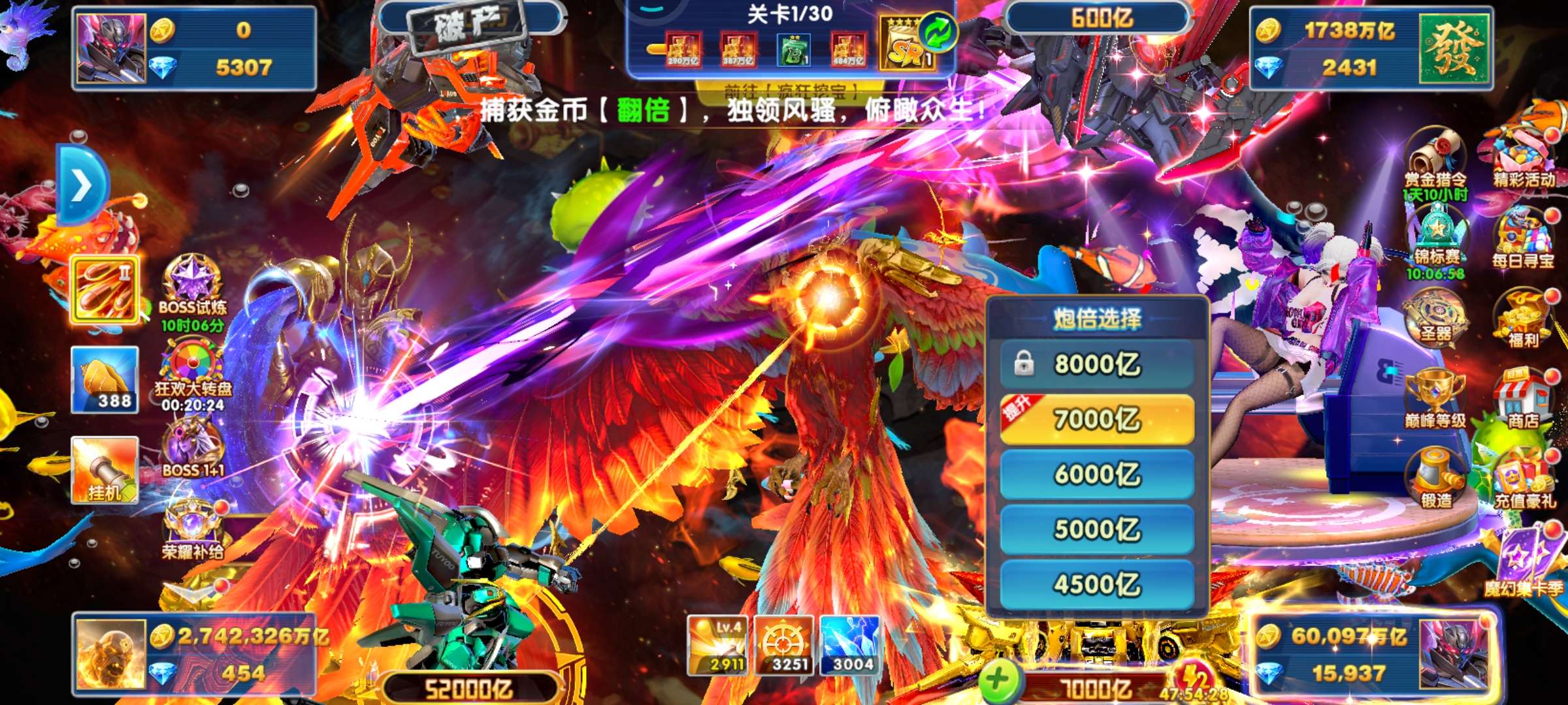 捕鱼大作战出30兆金币,vivo版本,11套,神卫、组合技,380炮