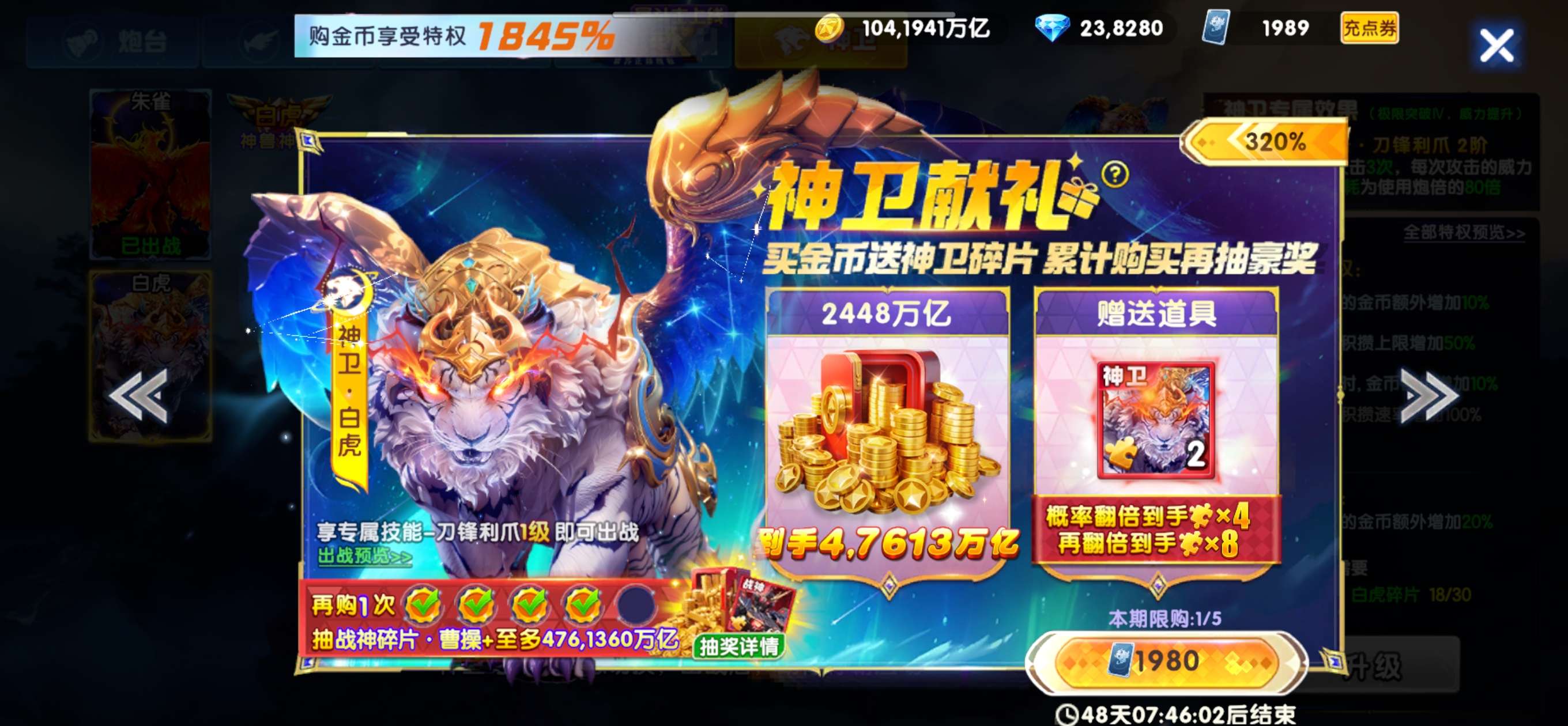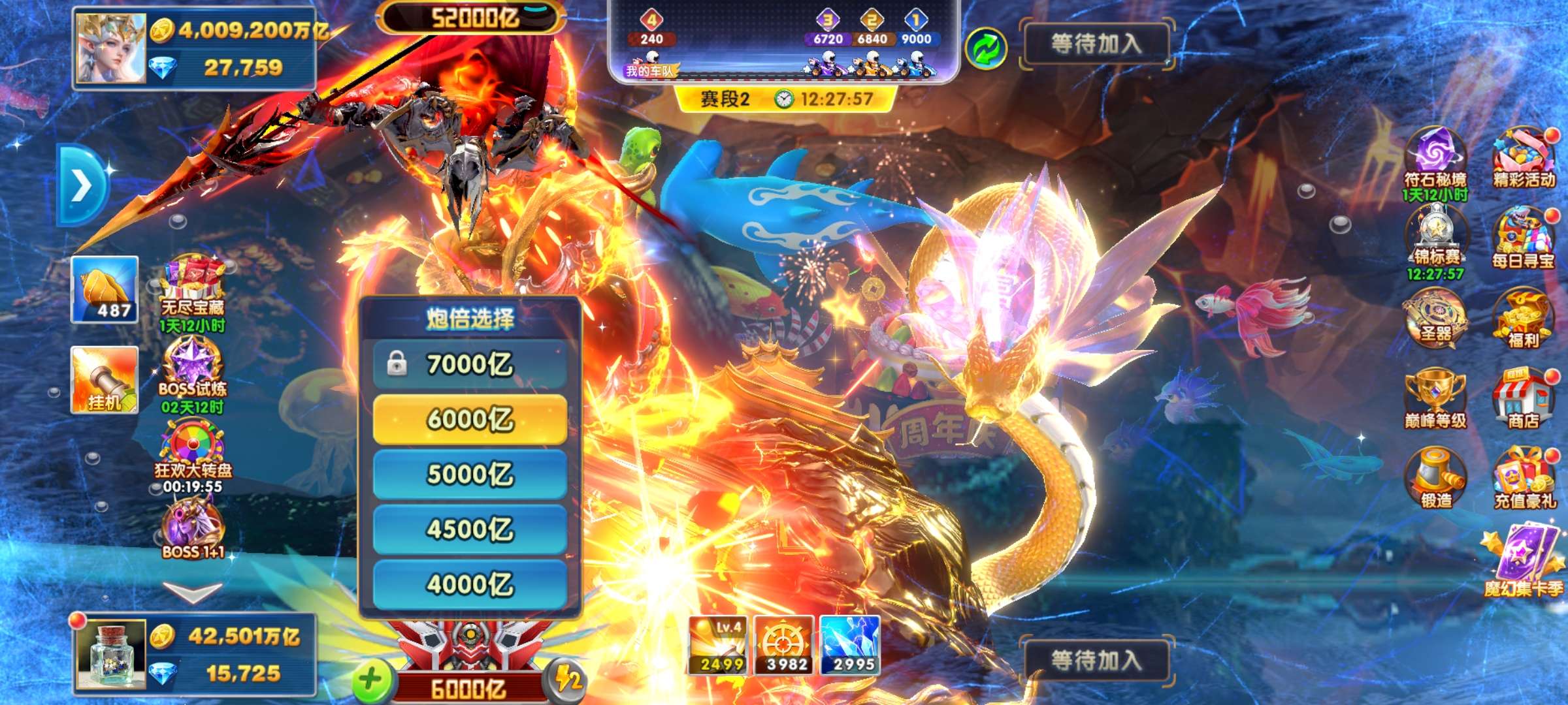 带号出 4.25兆金币 60炮 带滋炮台 巅峰10级 加速翅膀2天 4级狂2天 狂暴2499