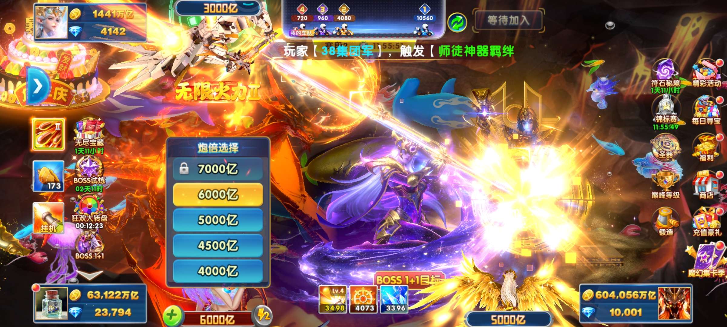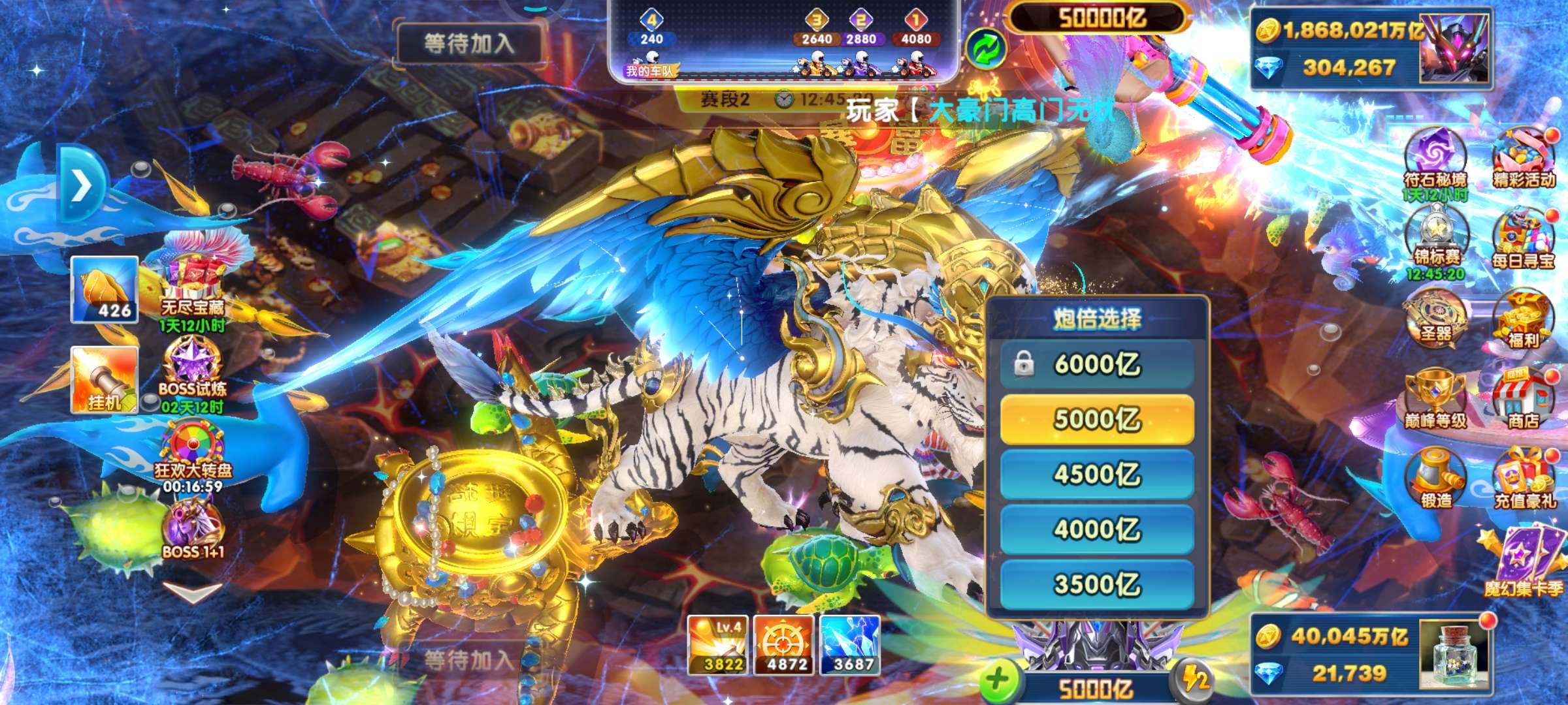 带号出 4兆金币 50炮 带滋炮台 巅峰12级 加速翅膀2天 4级狂2天 狂暴3822 核弹24