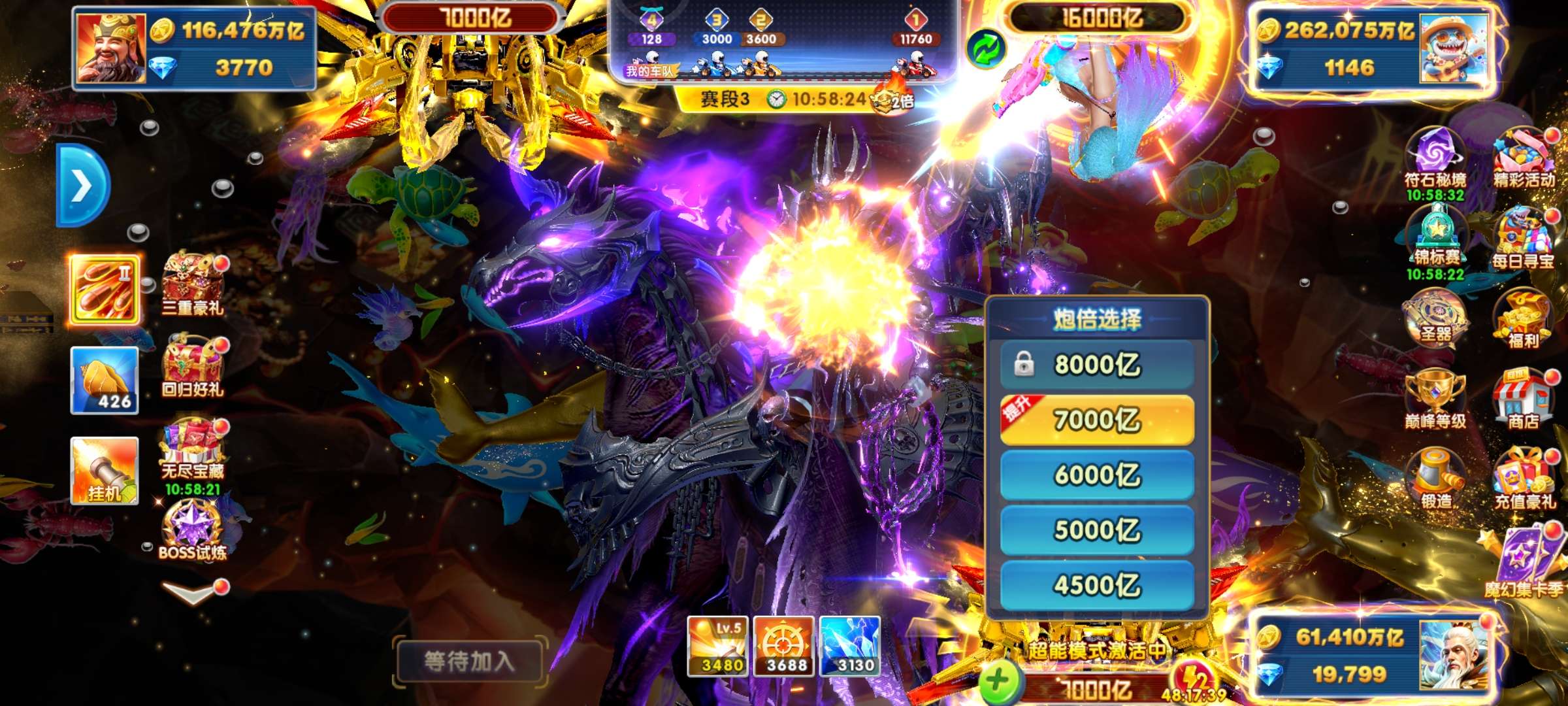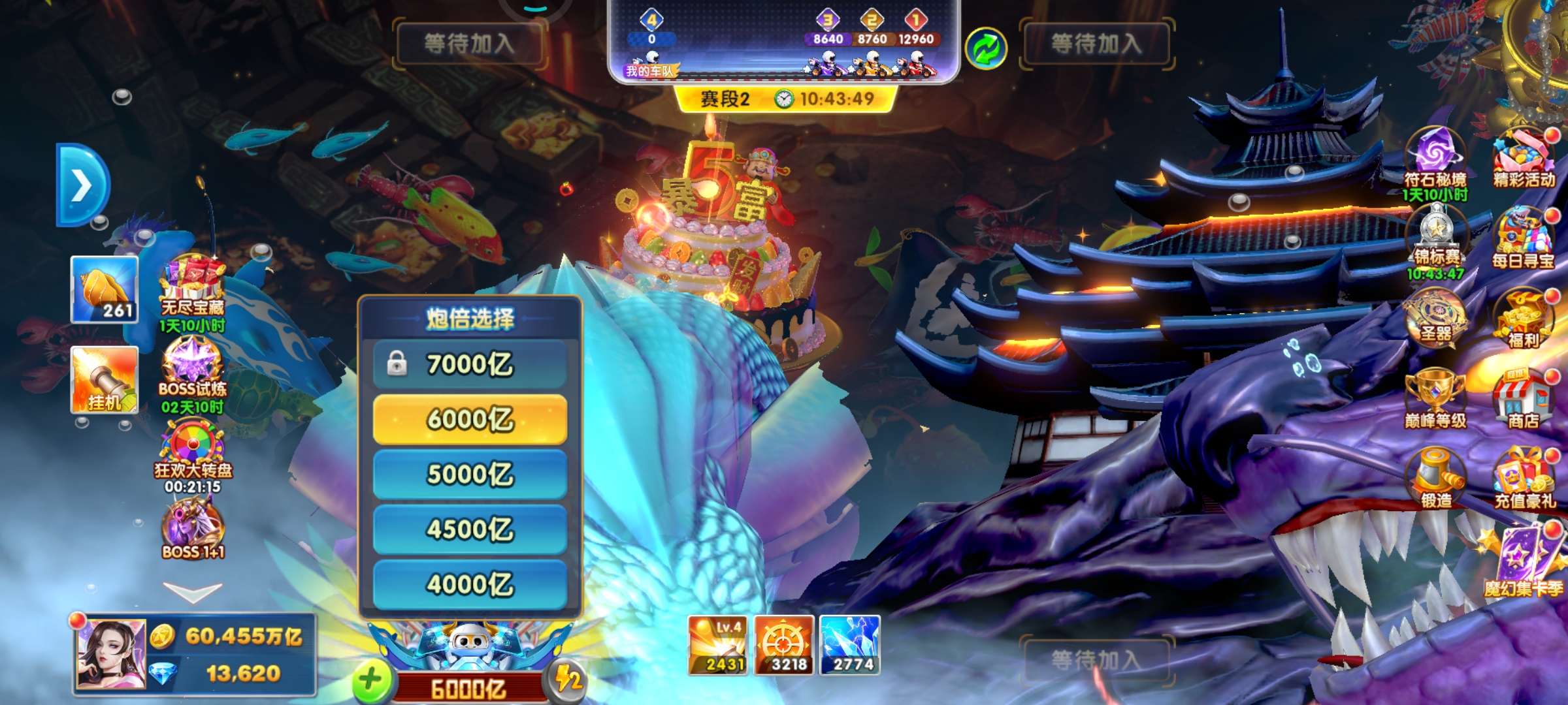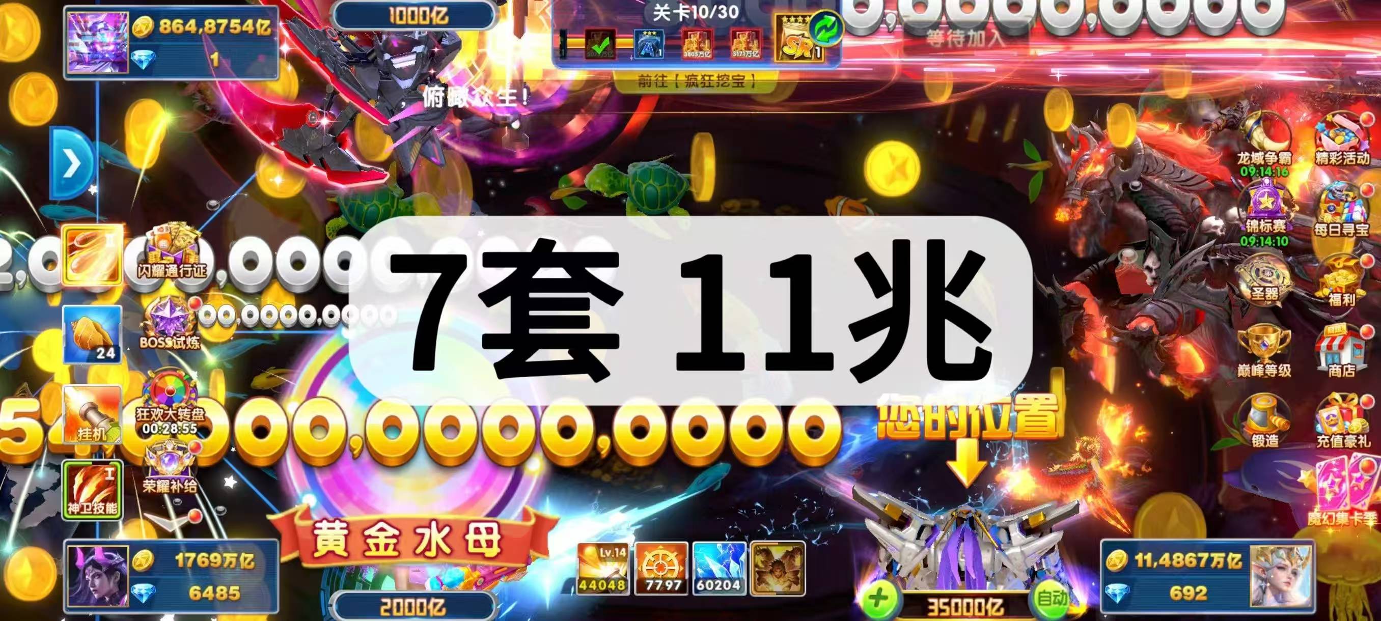 带号出 6兆金币 60炮 带滋炮台 巅峰11级 狂暴2431 核弹22