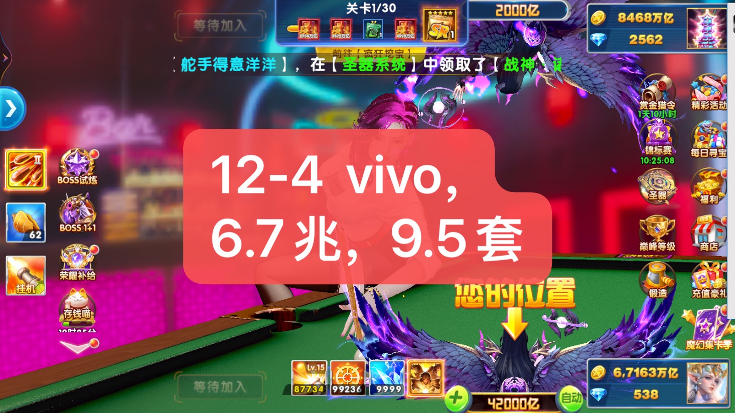Vivo7套-贵族15-有天使套-换绑一切-加成853-救济5368万亿-6.75套