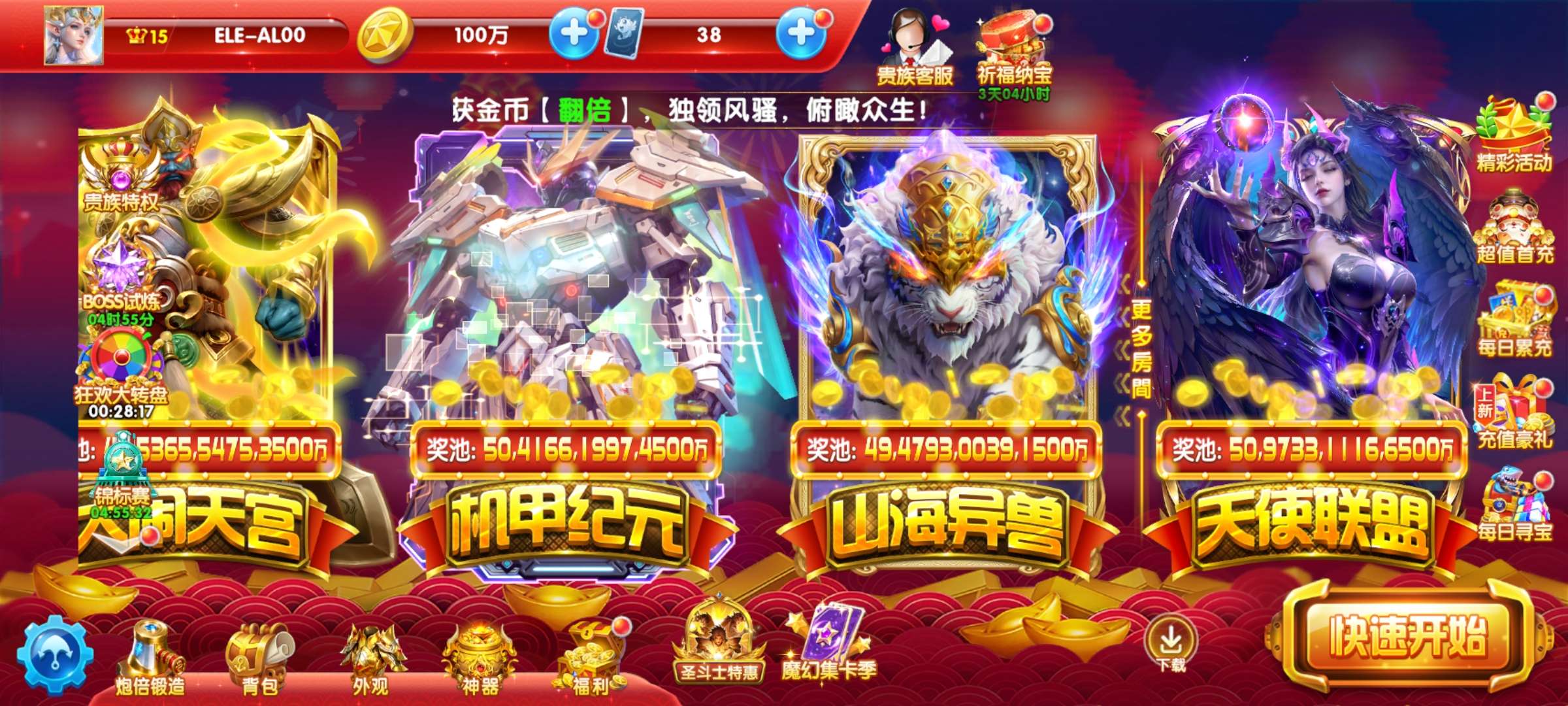 无绑v2,100+10炮8兆,巅峰20,进房领超能和吕布,月卡刚开,8字头可改一切