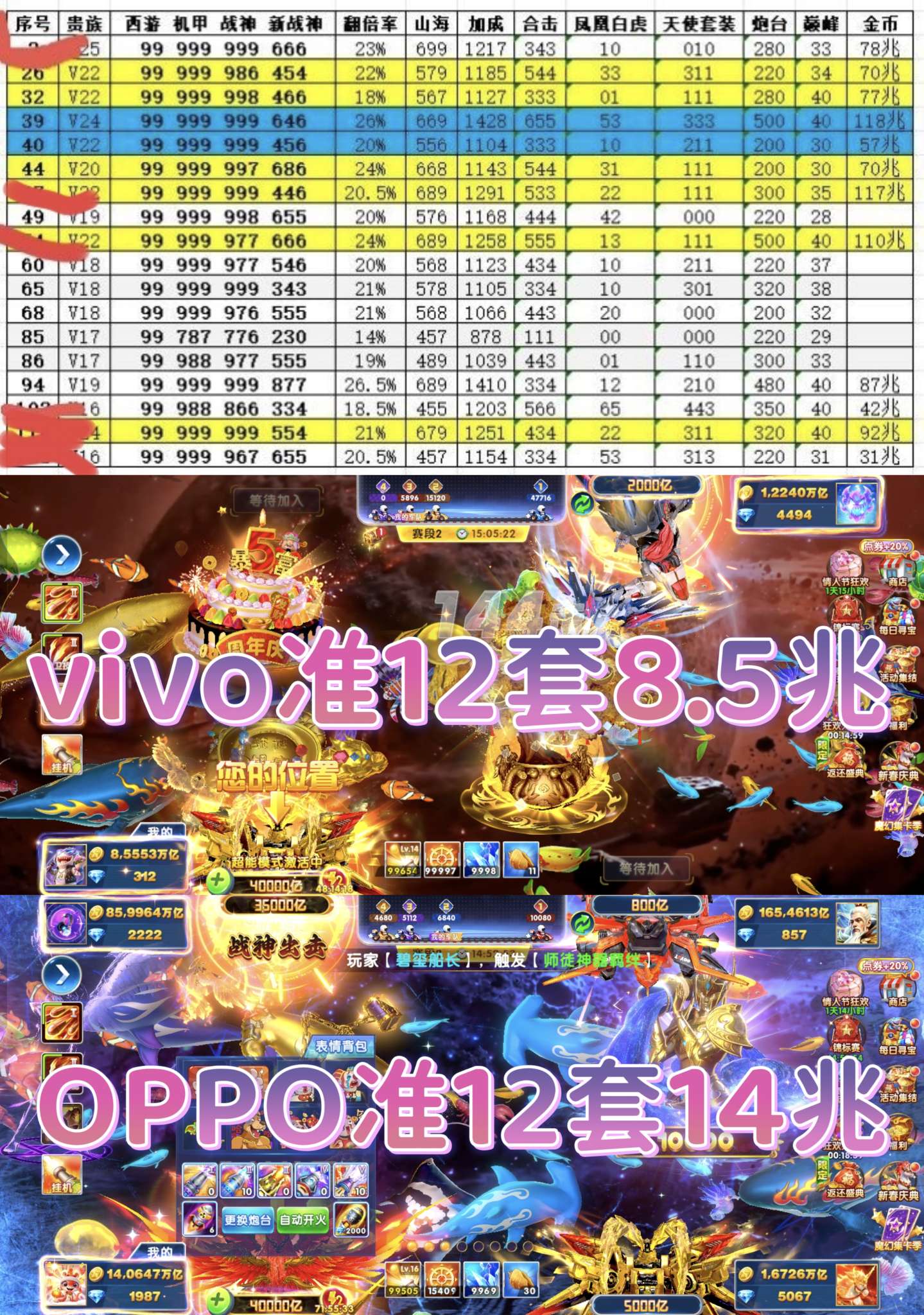 OPPO准12套 特价出14兆 来正常打不拖号的,另外还有很多金币号,欢迎咨询选购。