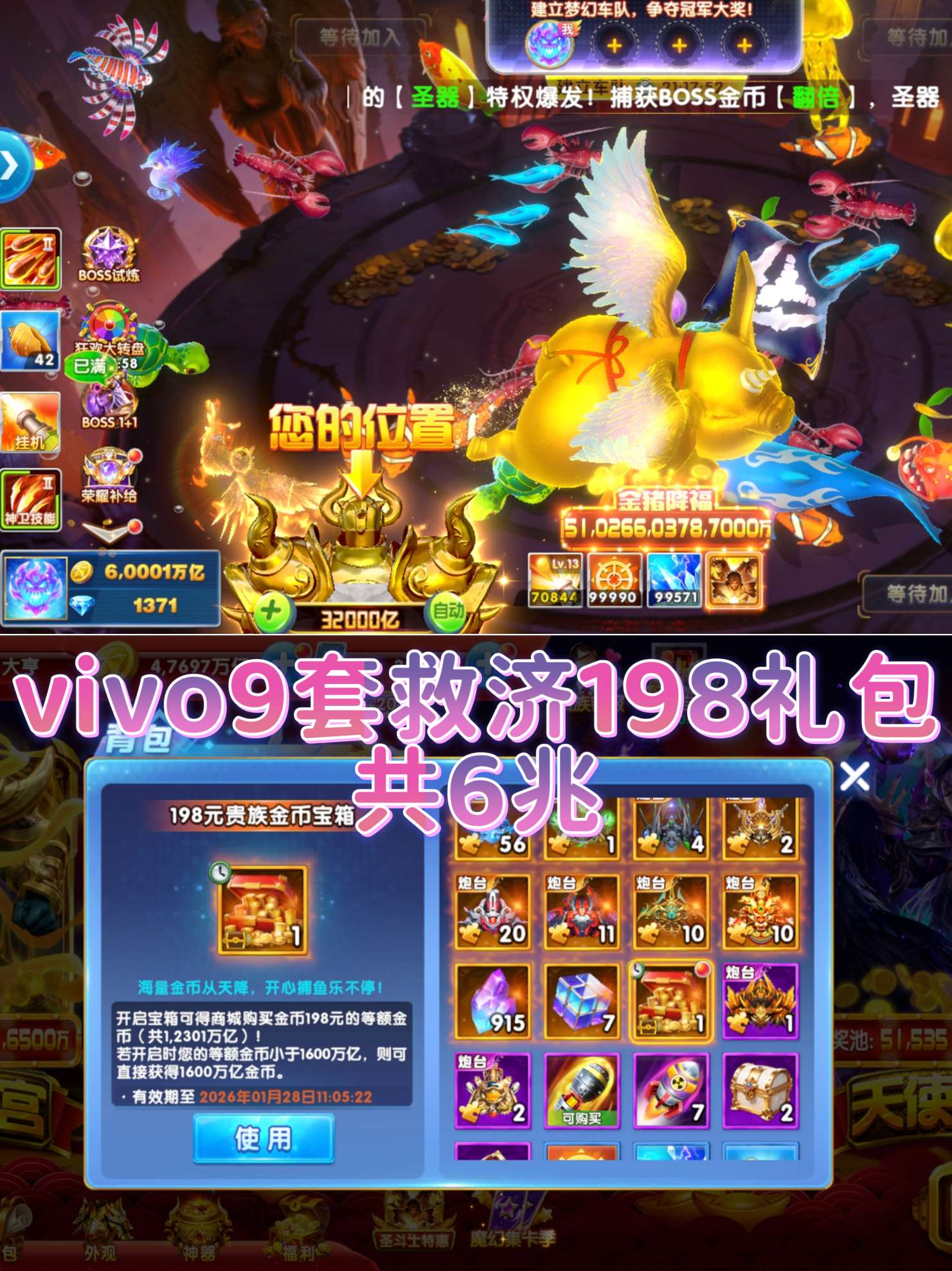 vivo9套 救济198礼包 共6兆,今日未开打,特价便宜出。