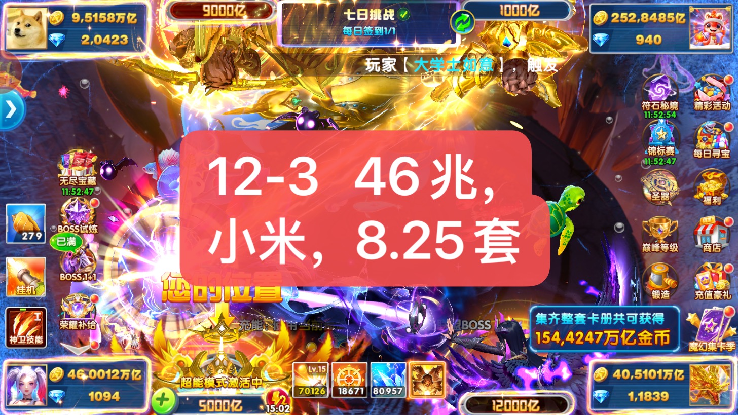 519万亿 实60炮 虚70炮2天 吕布3天 巅峰9级 狂暴3236 核弹26