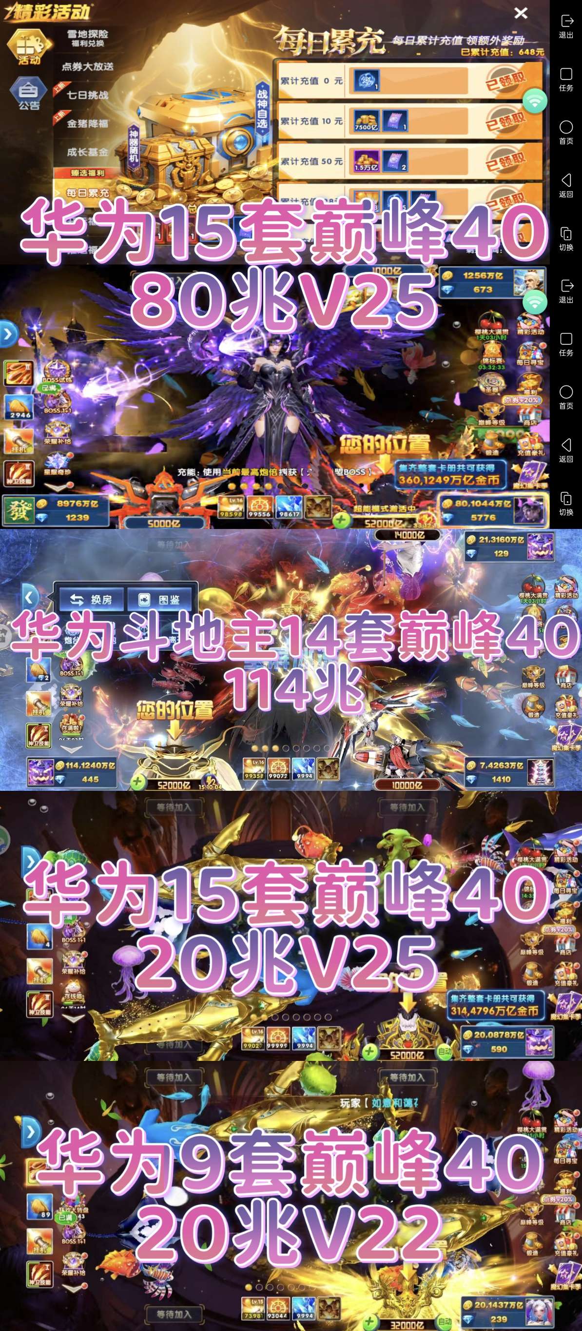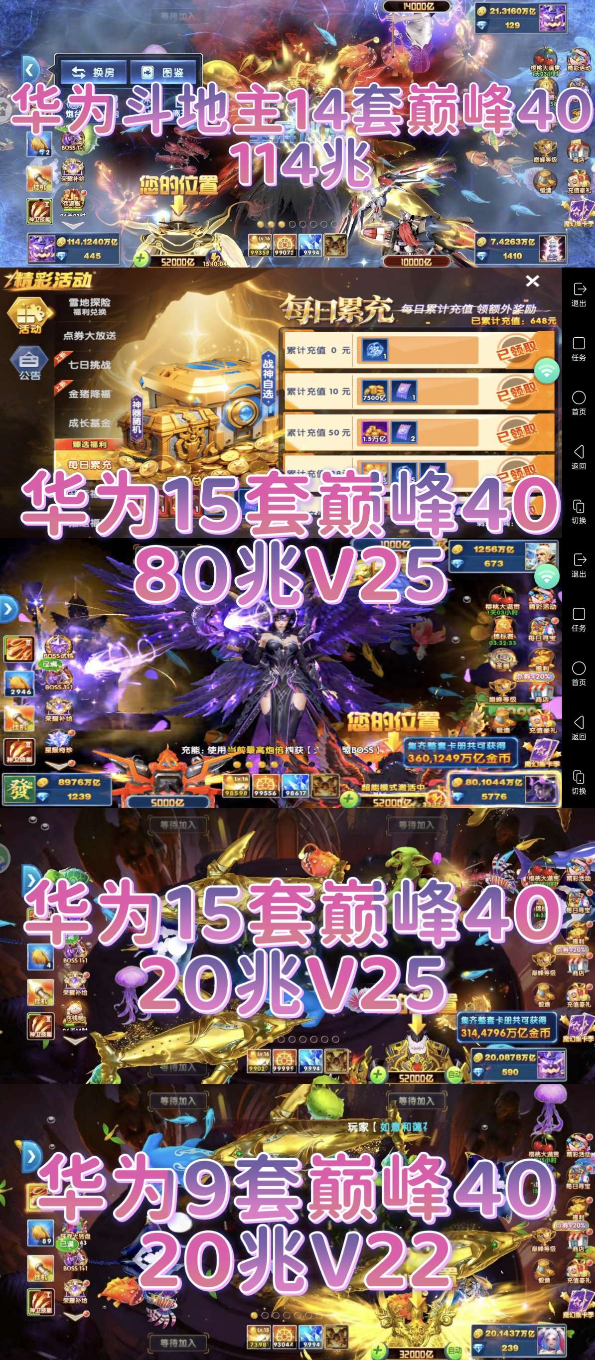 华为斗地主版本14套 特价出114兆金币,还有几个其他号,欢迎咨询选购