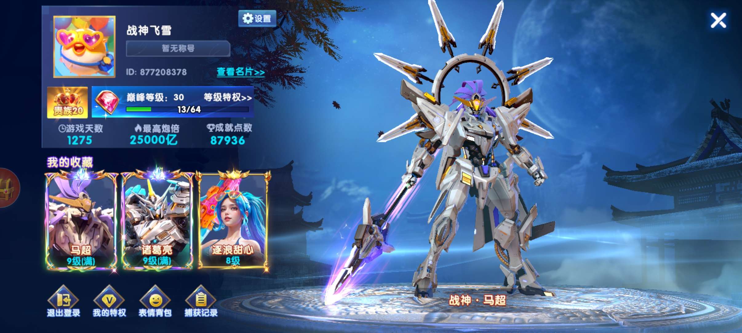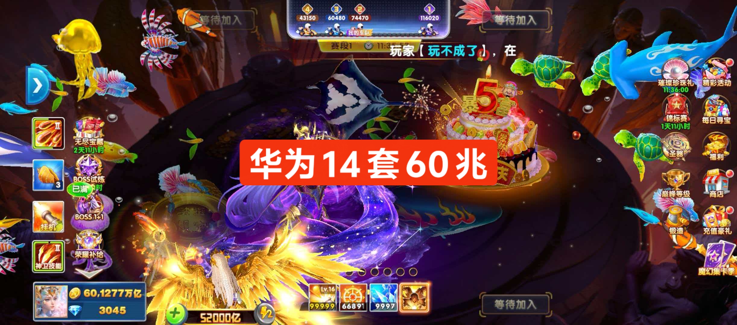 华为特权9,捕鱼大作战四国军棋版本,华为渠道贵族14,天使惩击和雅典娜都有还有四百多京金币90京激光