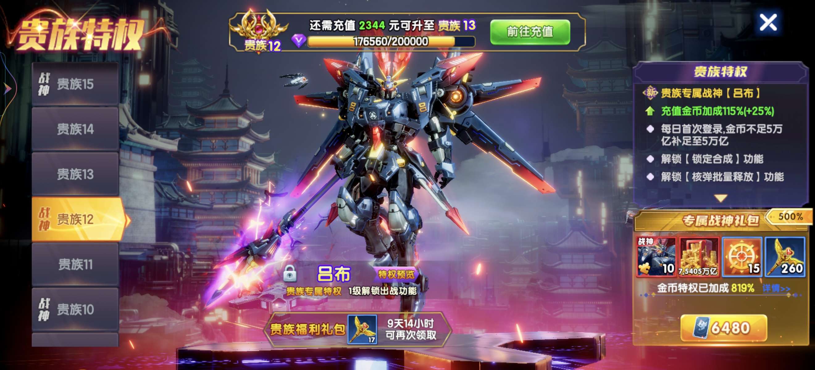 华为渠道特权12贵族25顶配十五套,金币加成2306,满返96%,纯救济4.1兆,新战神魅魔出站,换绑一切