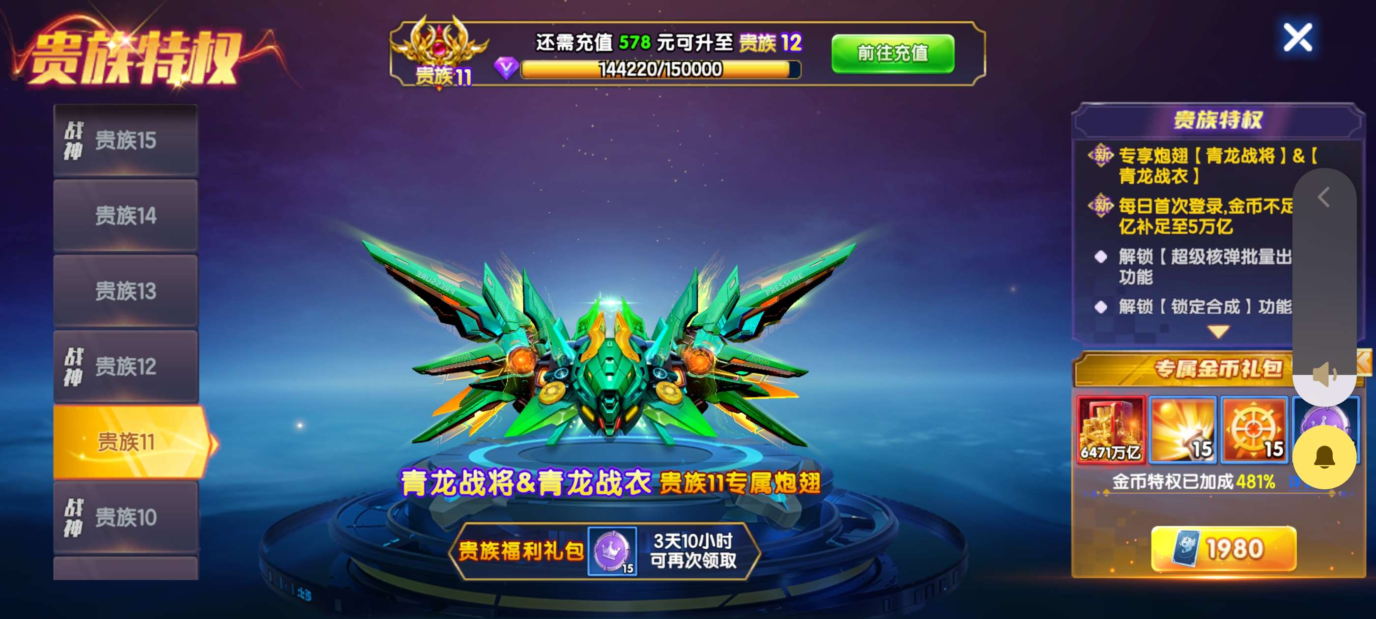 v3 1815万亿 实80炮 虚90炮3天 刀手2级 圣斗士3个 巅峰27级 加速翅膀3天 10级狂