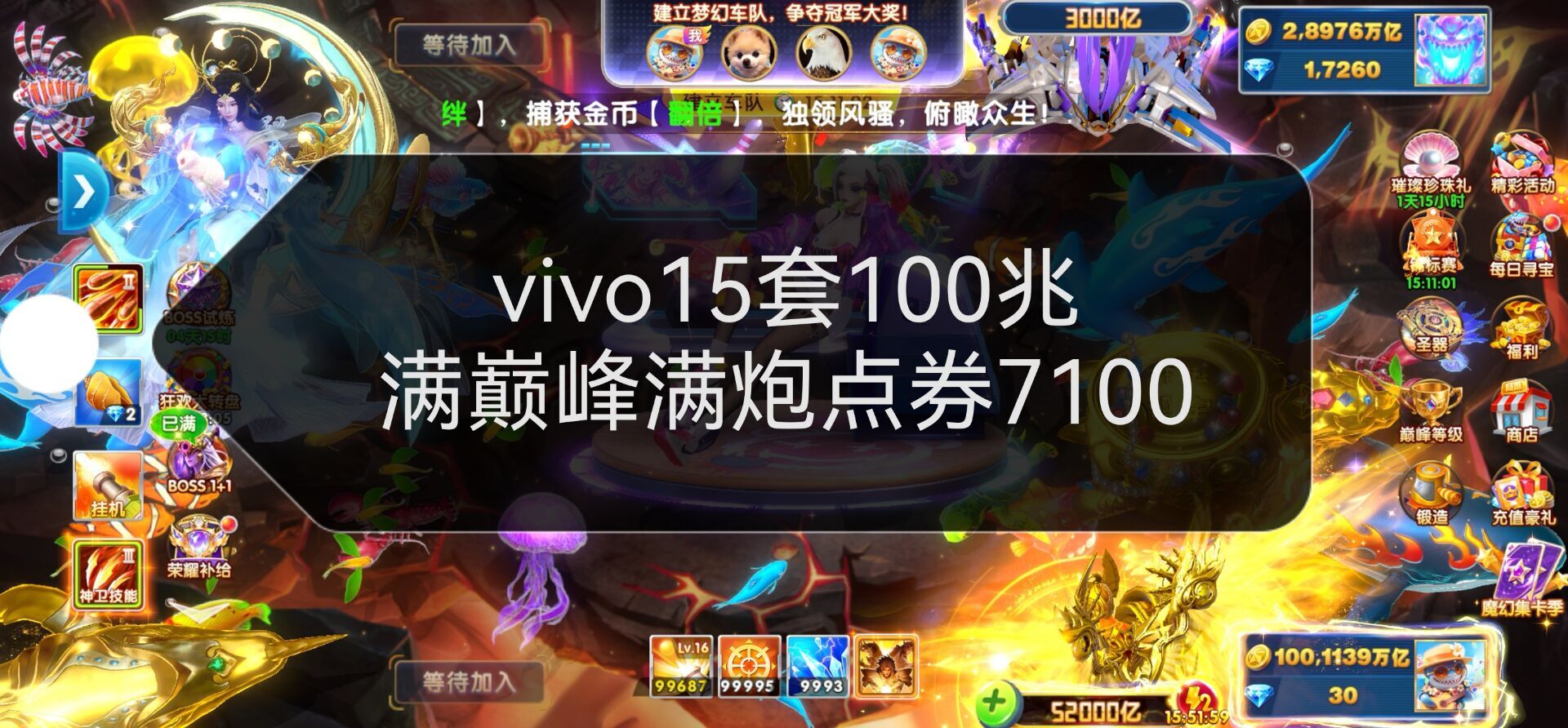 捕鱼大作战 vivo渠道 贵族22 28%翻倍几率 每日纯救济金2.4兆 接受日租 周租 月租