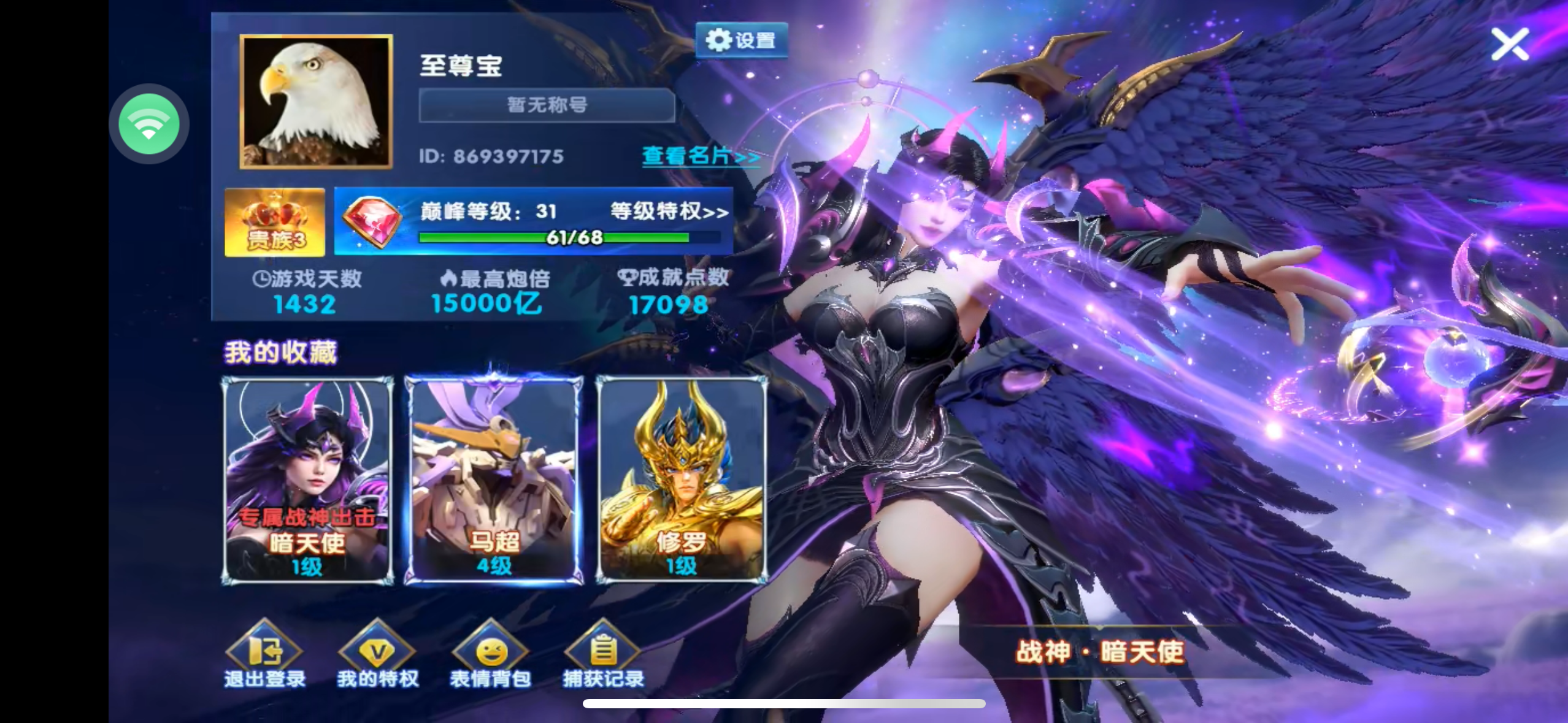 无绑v1,80+10炮10兆。巅峰17,进房领超能和吕布,活动都在,8字头可改一切