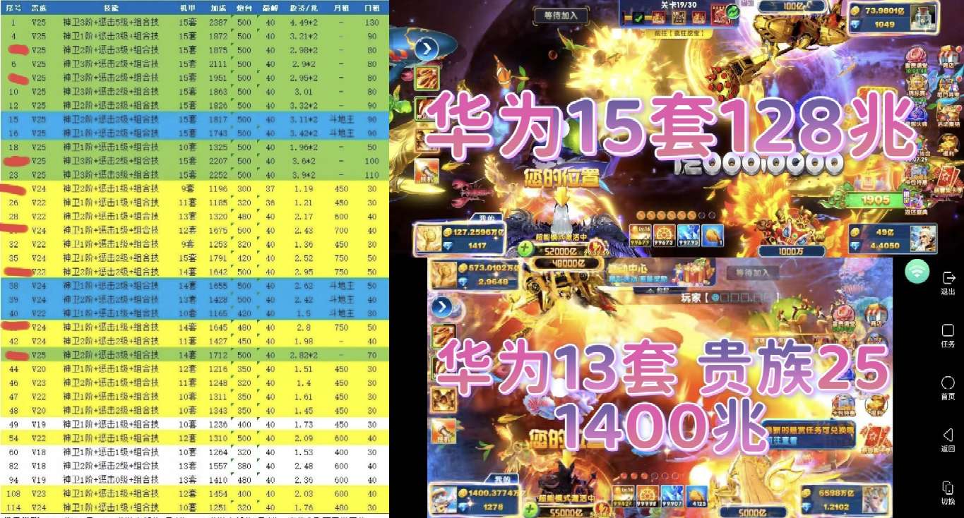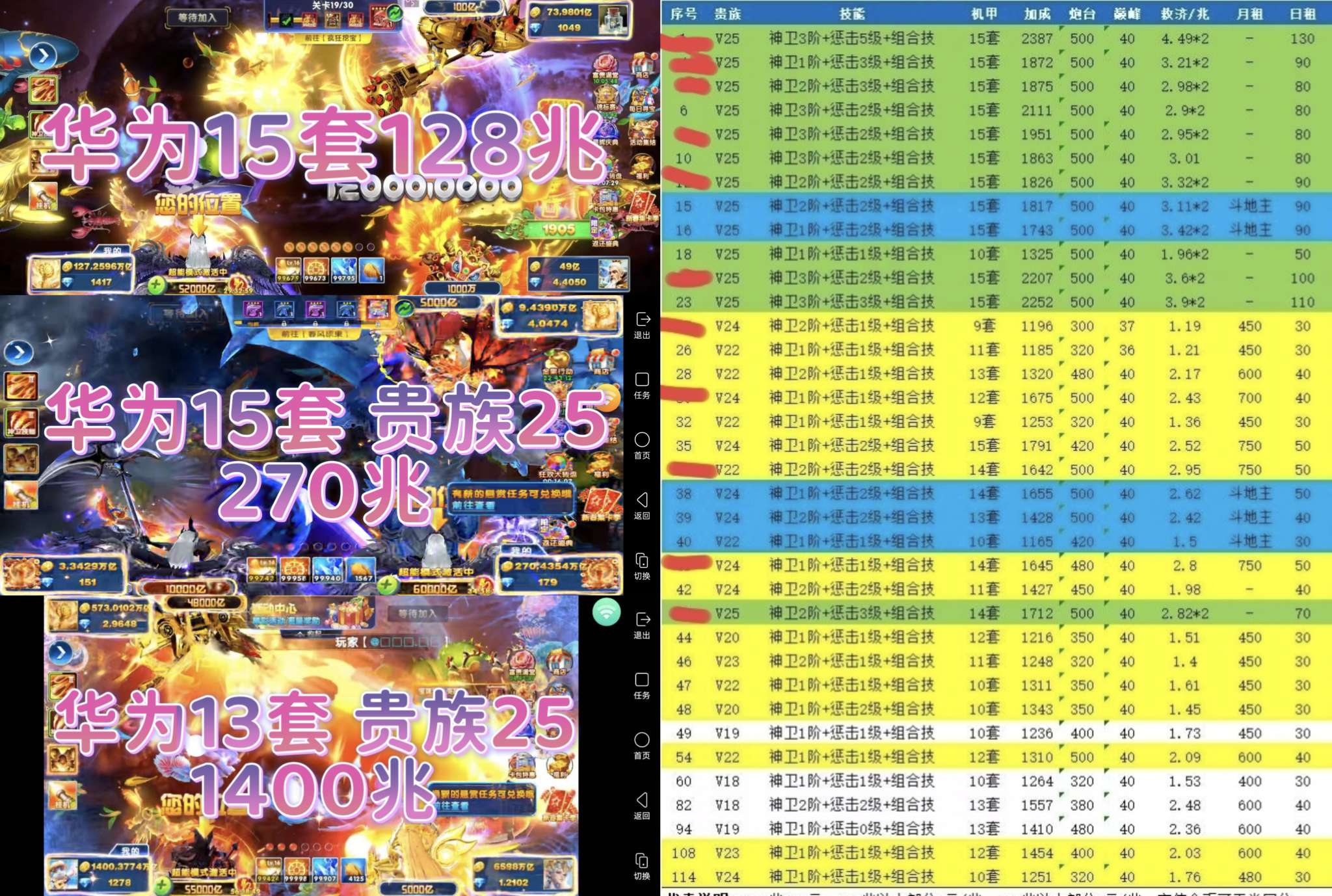 华为13套贵族25 特价出1400兆金币 来快枪手不拖号的,感谢支持!
