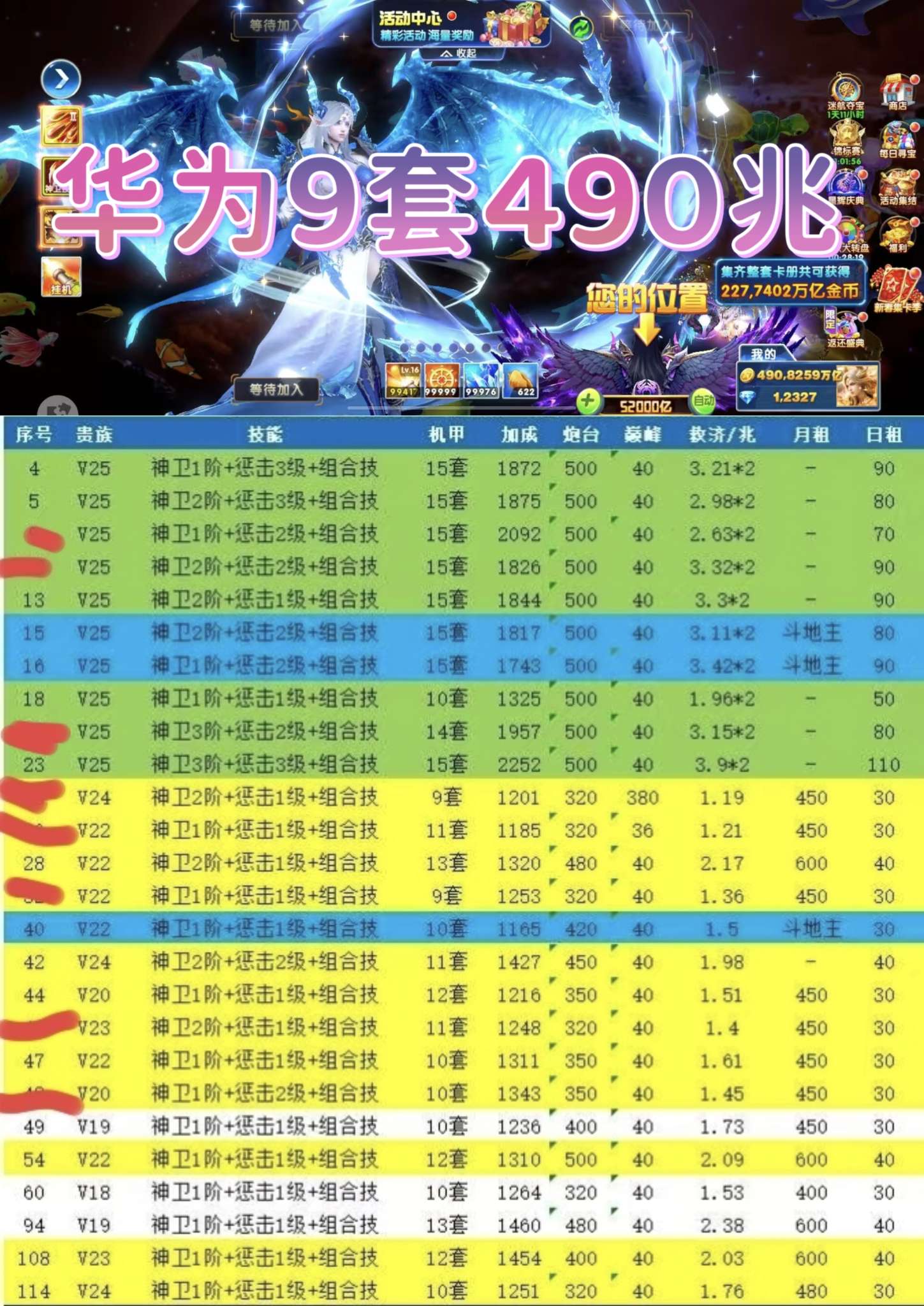 华为9套 特价出490兆金币 来正常玩,不拖号的,还有很多救济号,欢迎咨询选购。