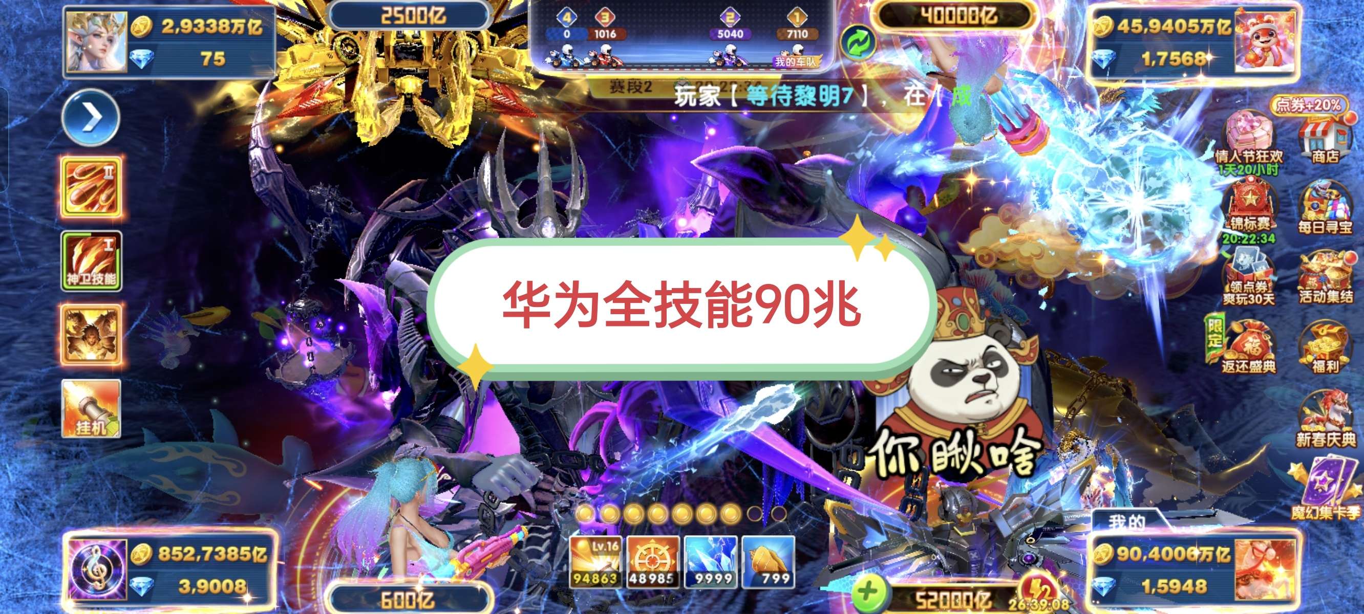 特价秒1906万亿----110虚炮刀手圣斗士巅峰25级v3有月卡
