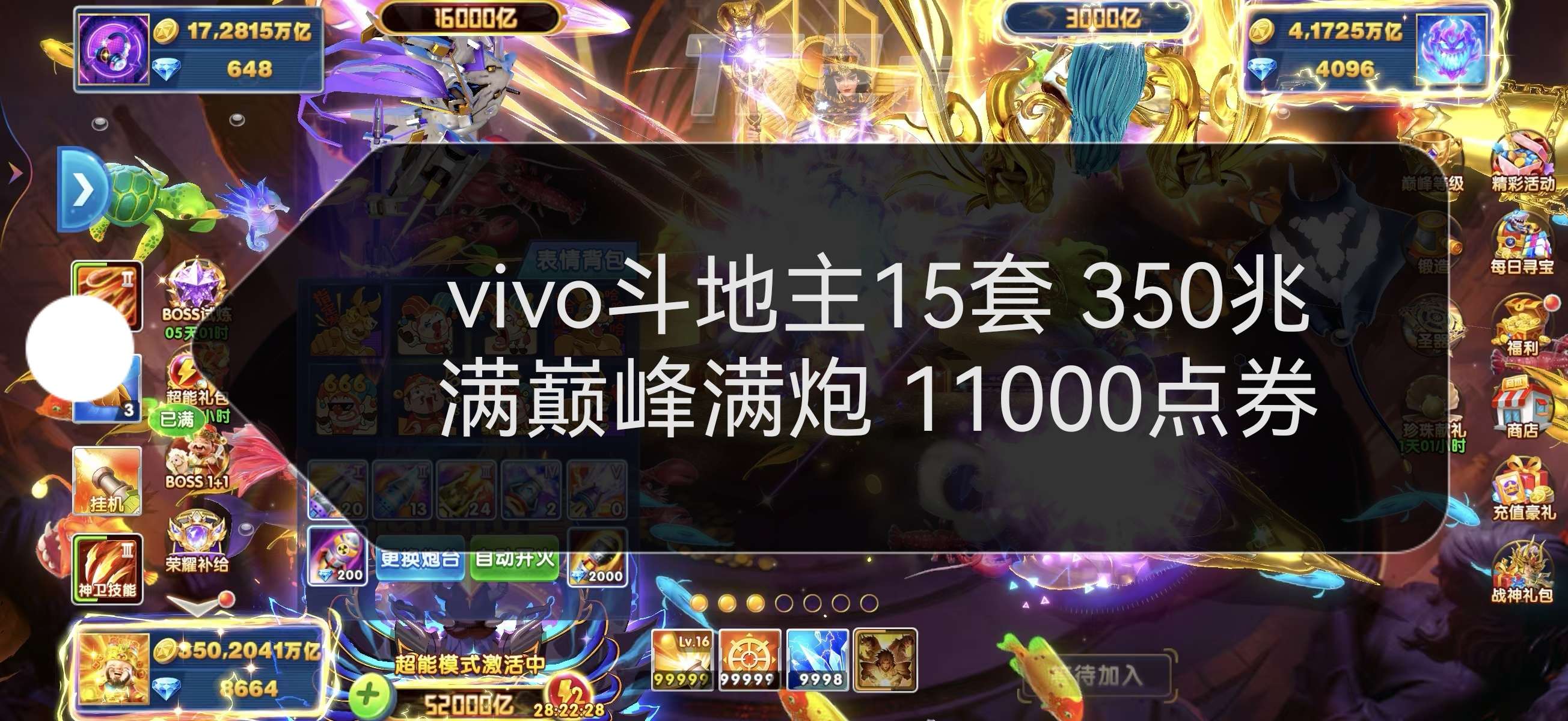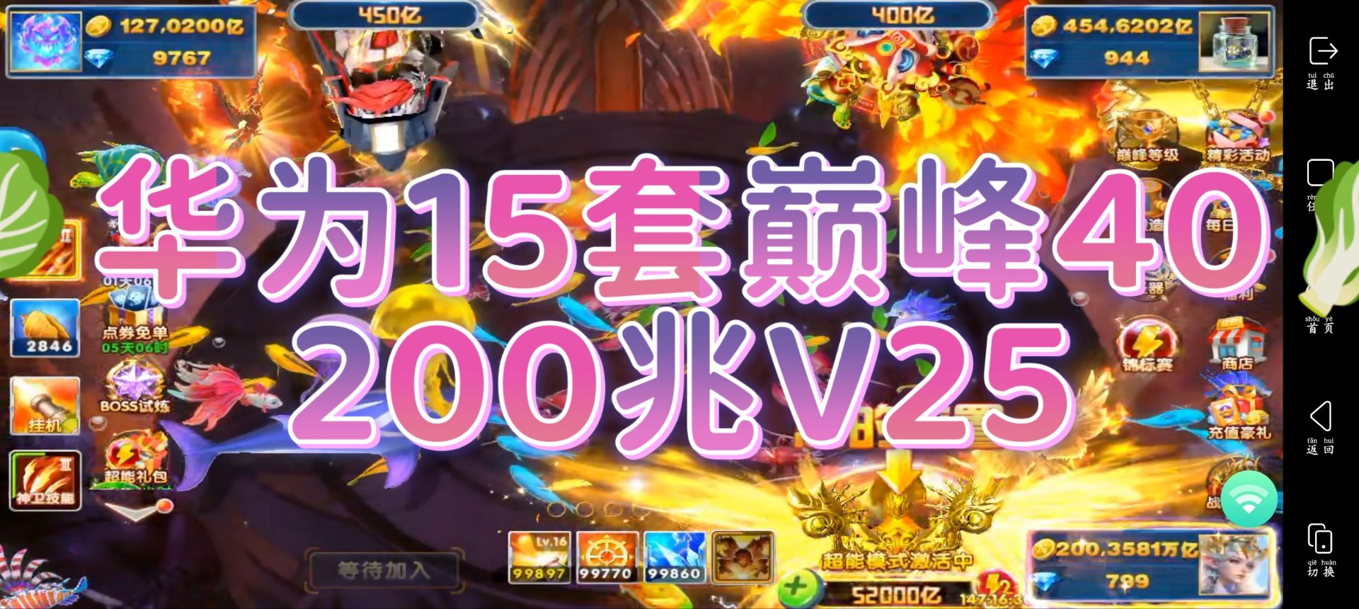 出捕鱼大作战华为极品号 特权11贵族19加成1600 13套准14套