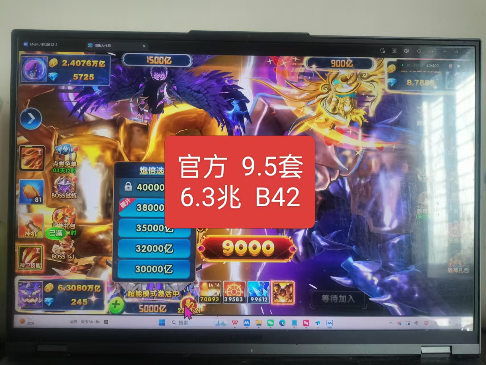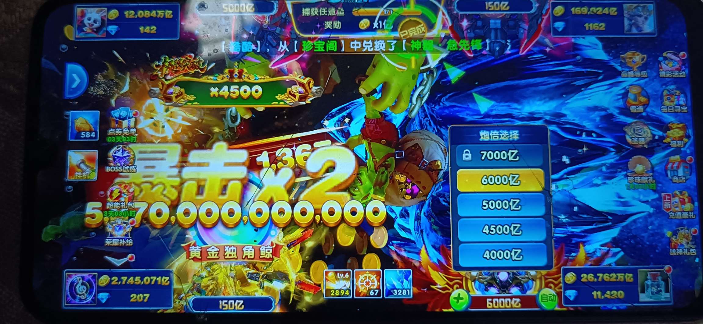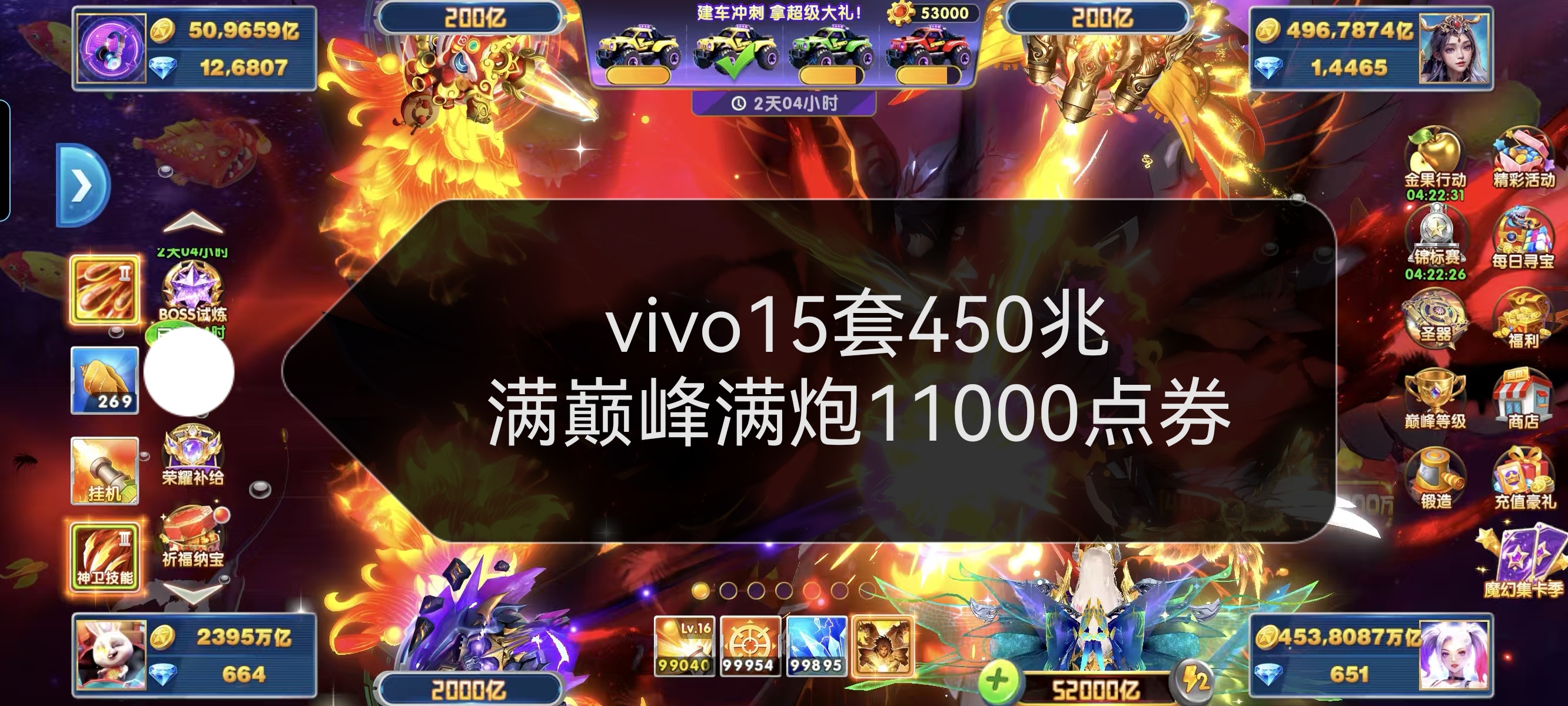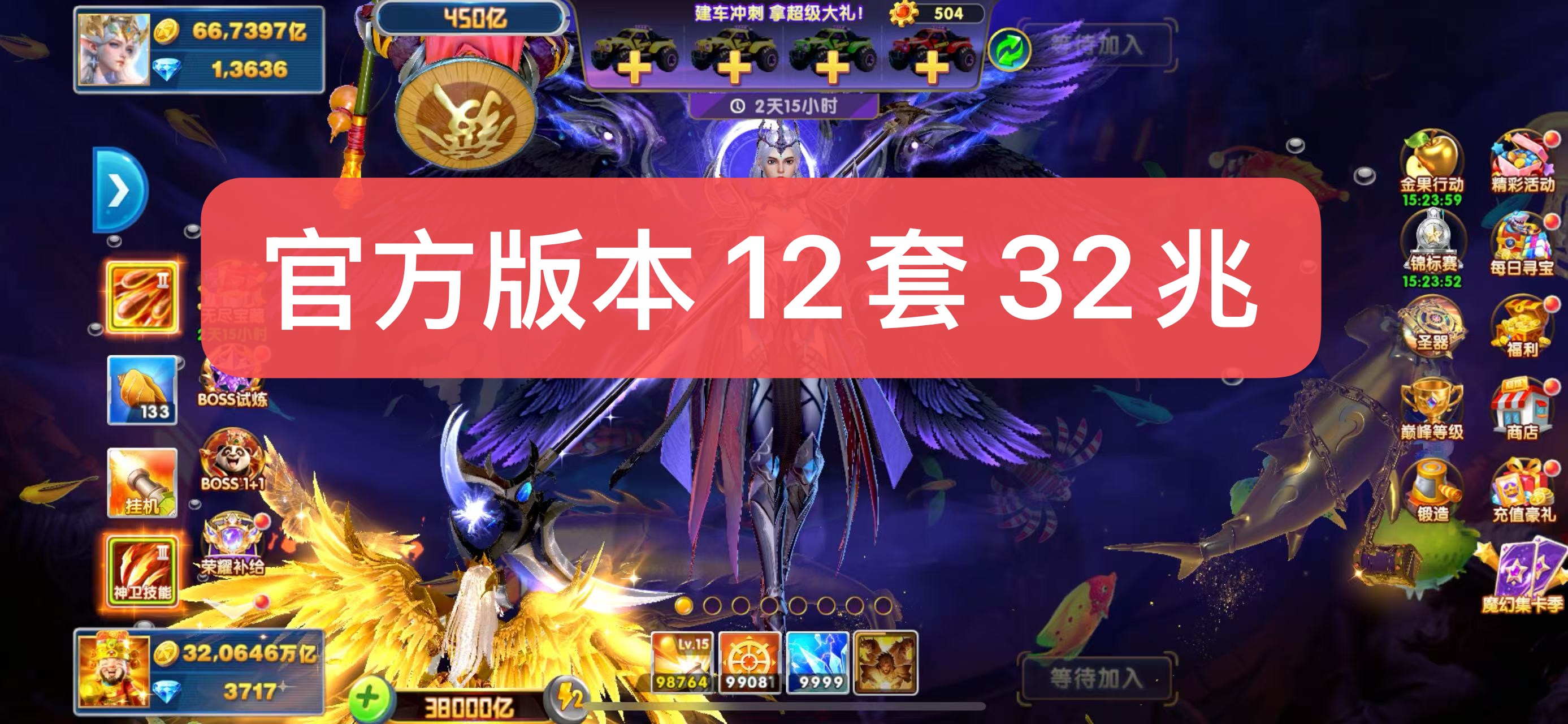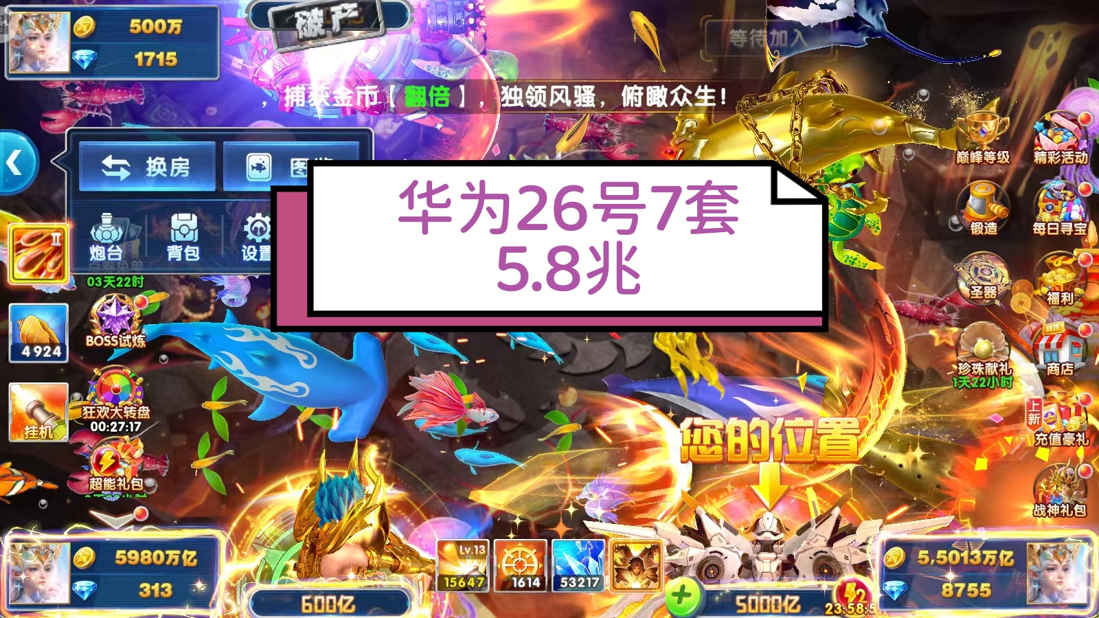 无绑v2 6000炮 26700万亿 狂暴2800+ 巅峰15 道具充足上线领翅膀