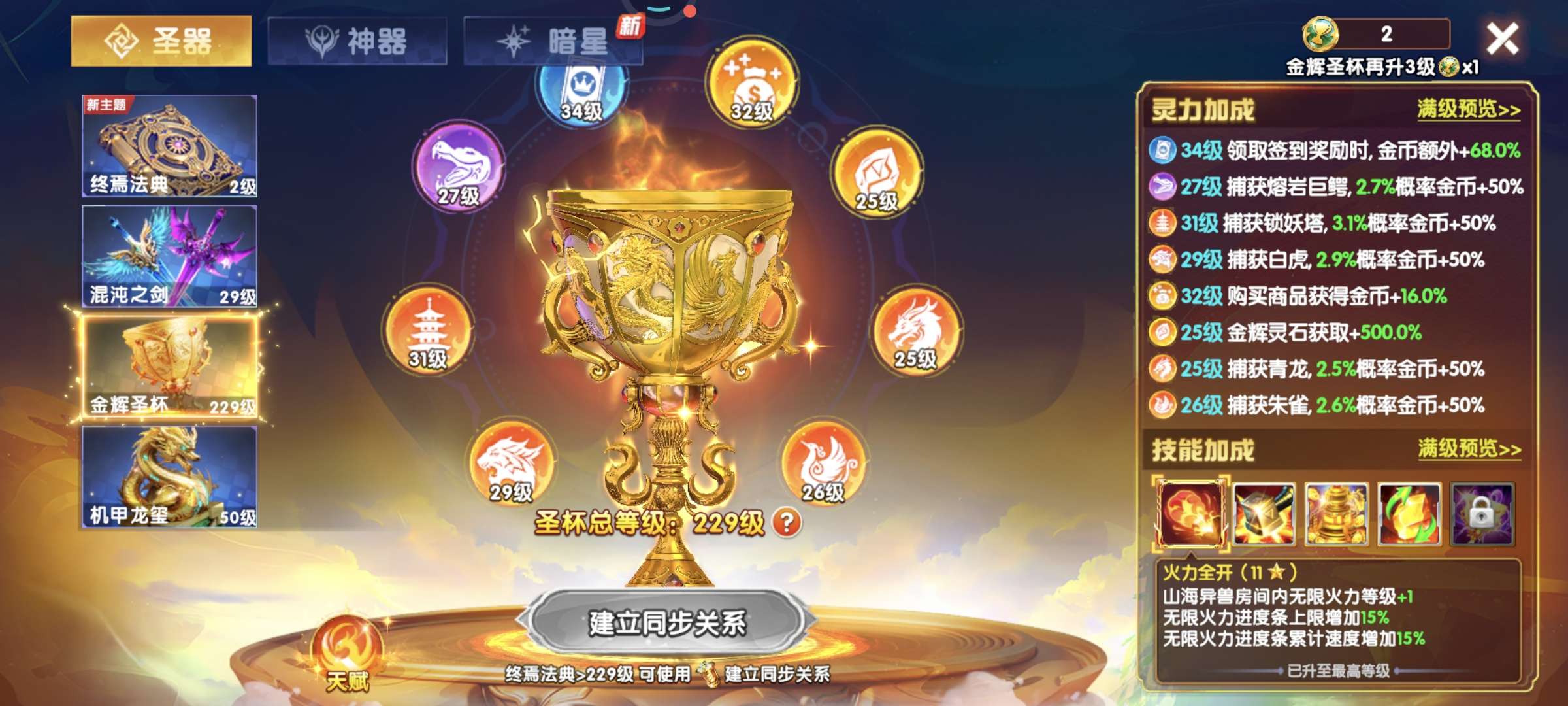 捕鱼大作战华为贵族25,特权12已过半,11套,1625加成 圣器升满和新三国各升一级即可,绝版星甲