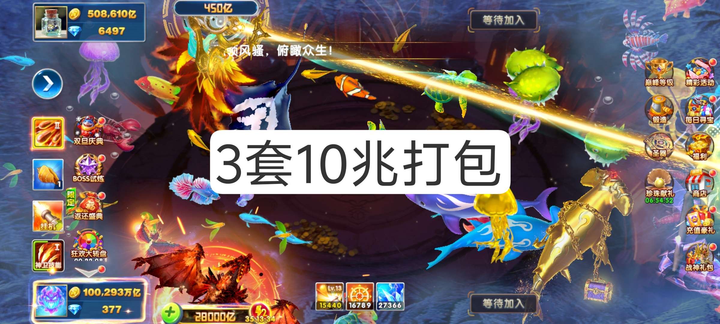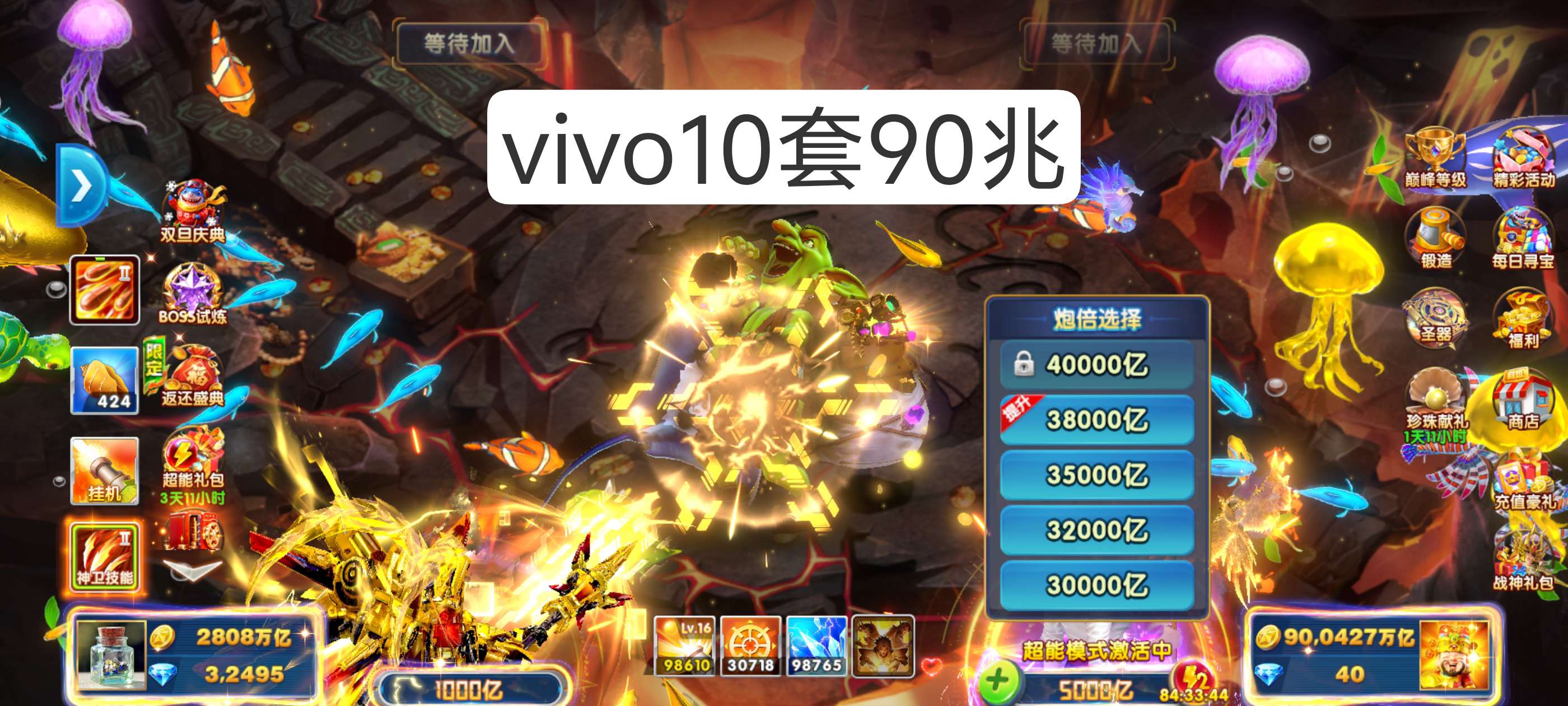 捕鱼大作战炮台 180,巅峰 31 破产号回 200,带两天超能