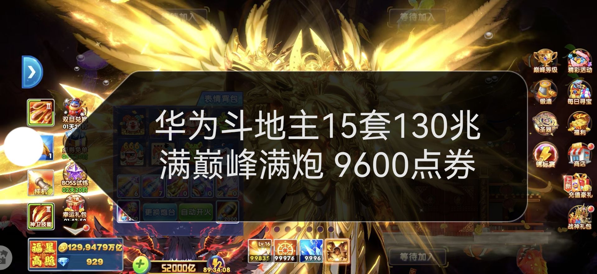 捕鱼大作战炮台 160 巅峰 33 破回 180,带两天超能