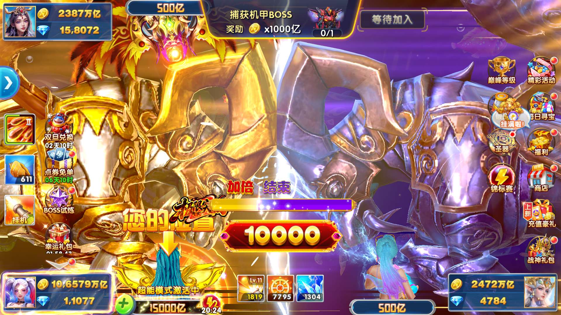 顶级华为v24 boss翻倍30 带500兆金币