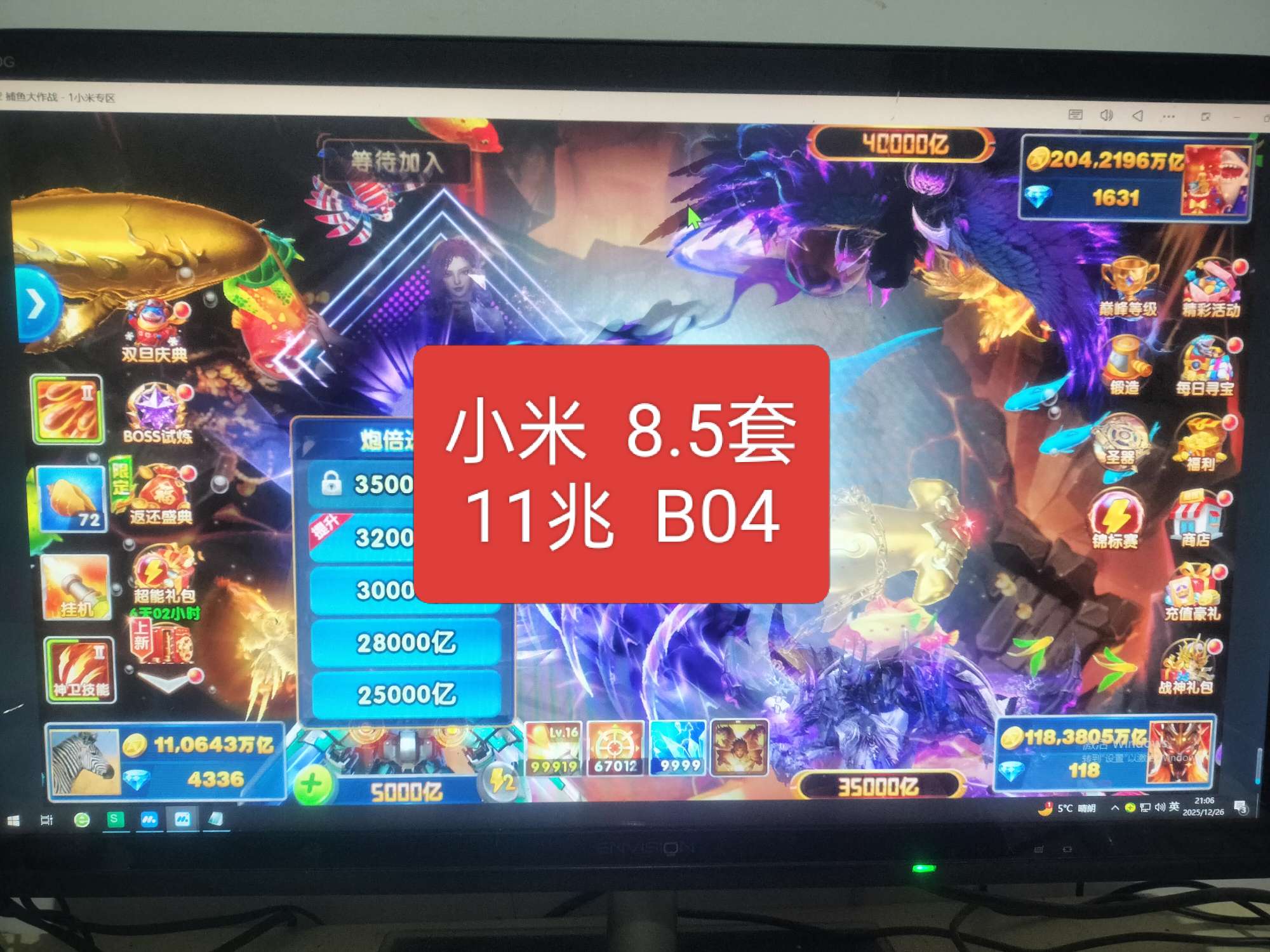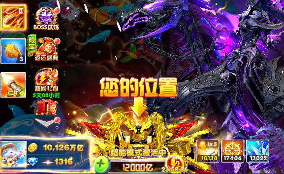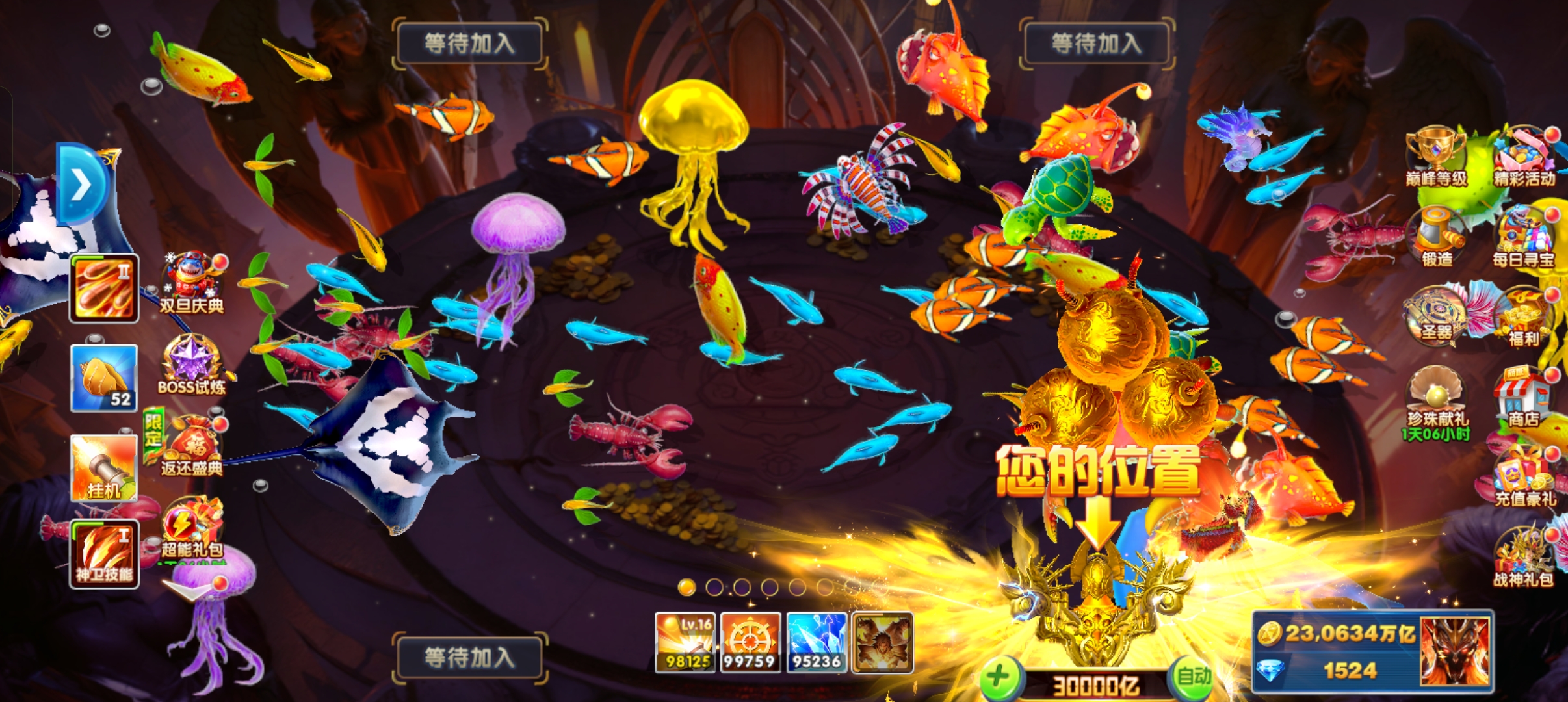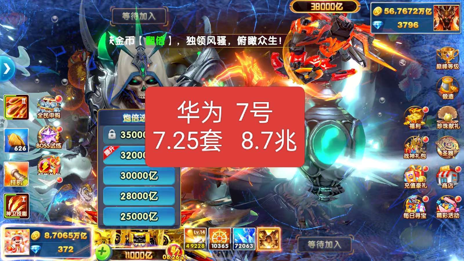 捕鱼大作战23京。满巅峰。全技能,破产回
