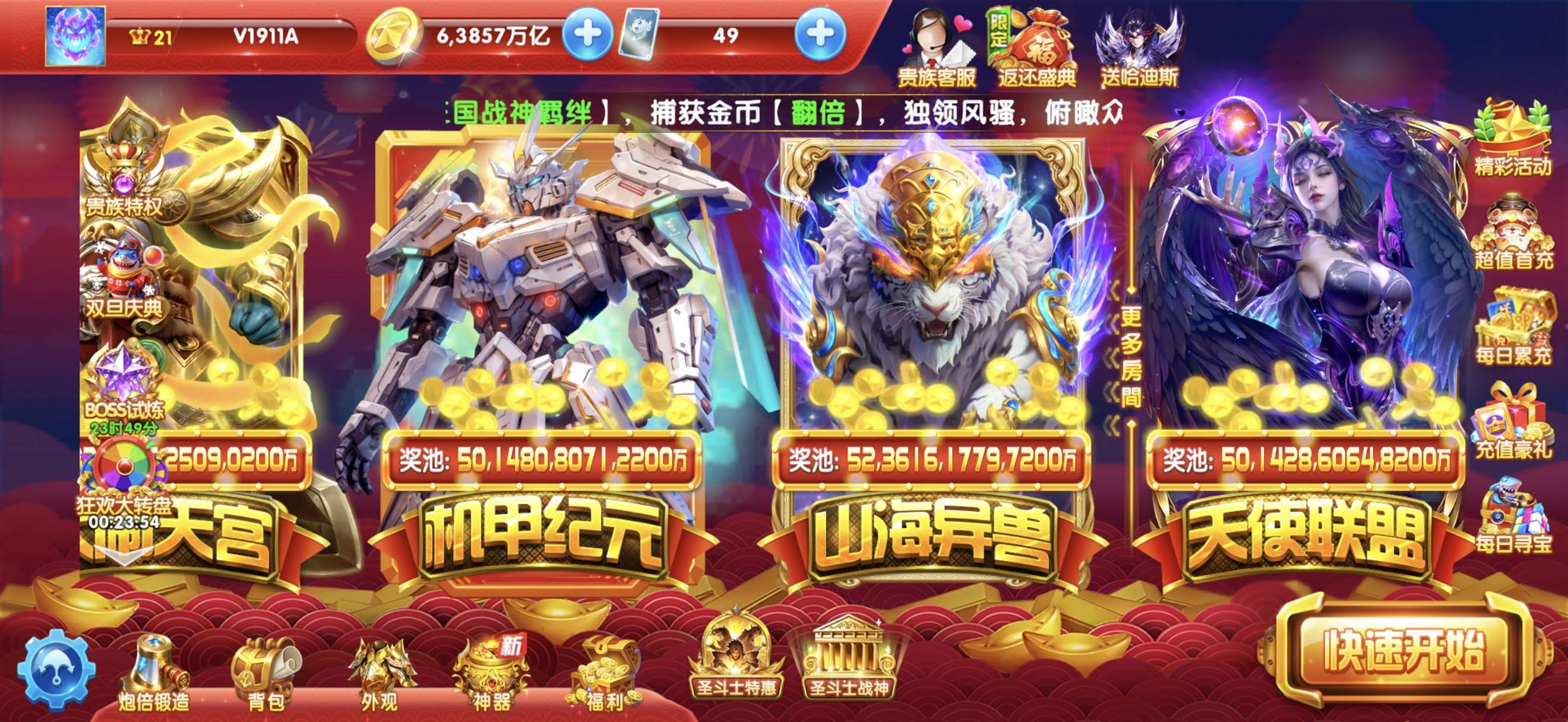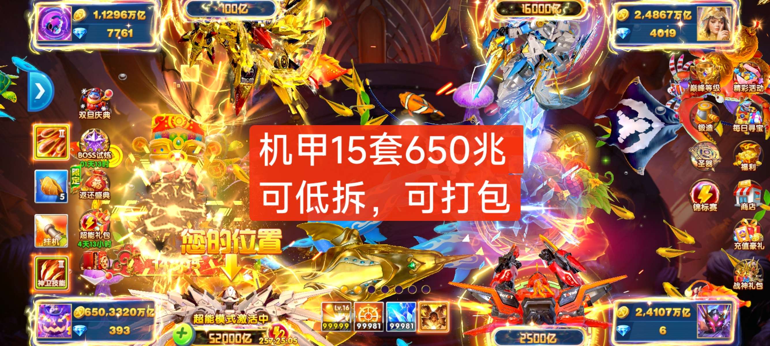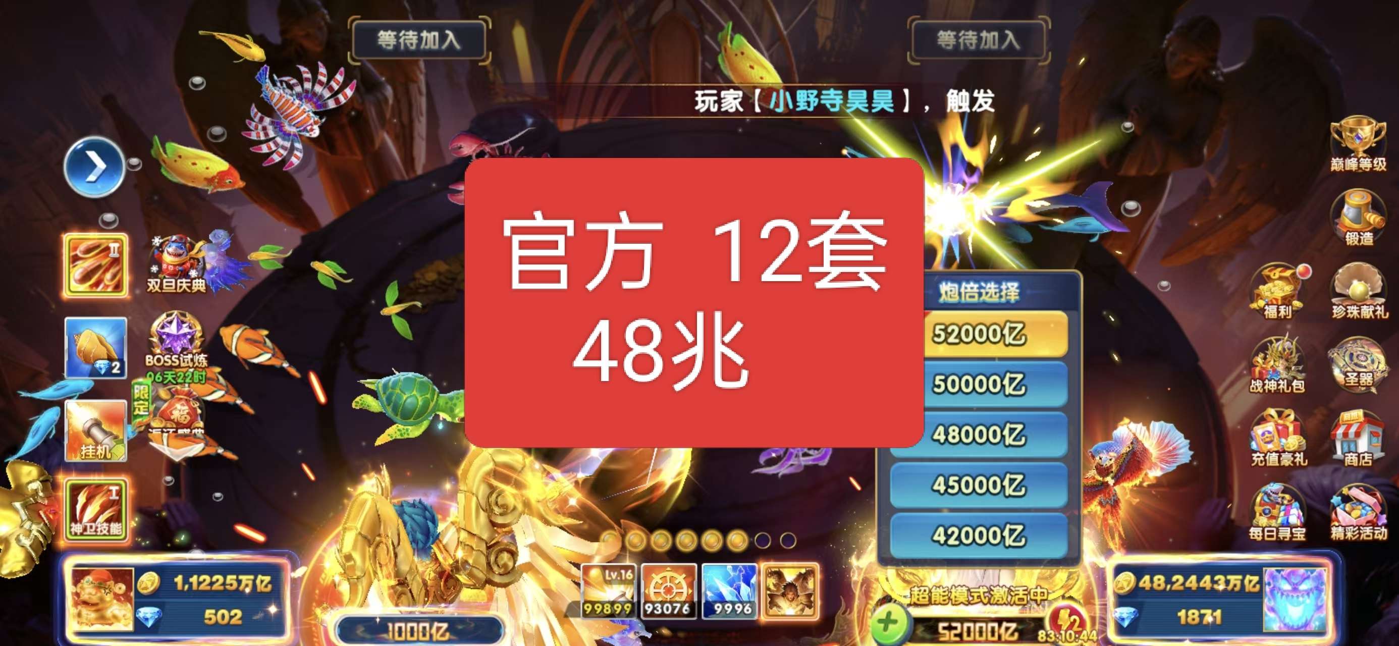 133兆满套高配号出 捕鱼大作战官方版资源多 账号安全稳定安卓苹果都能用 支持手机登录适合娱乐