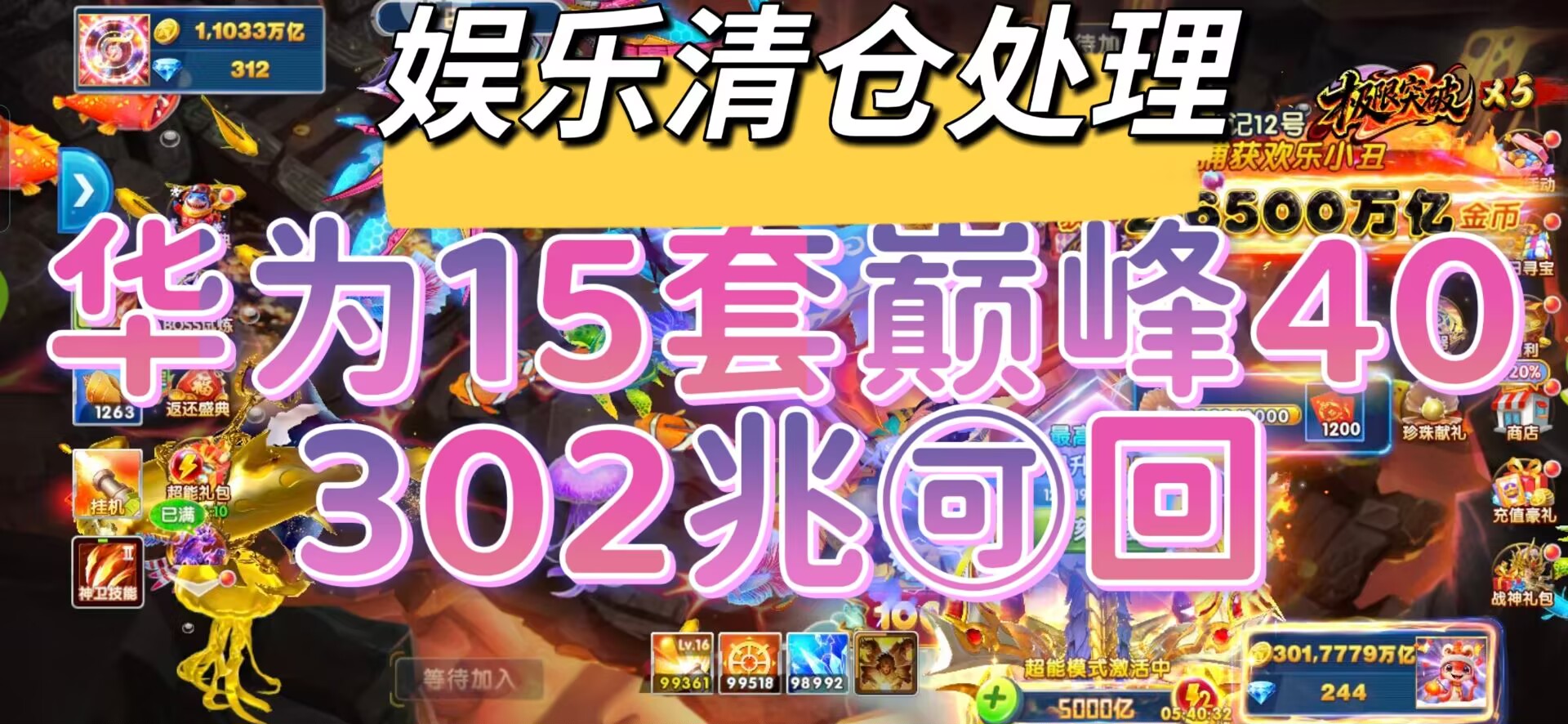 华为15套满配《出302兆》 来快枪手! 打满炮台的,还有救济盲盒,其他金币号欢迎咨询选购。