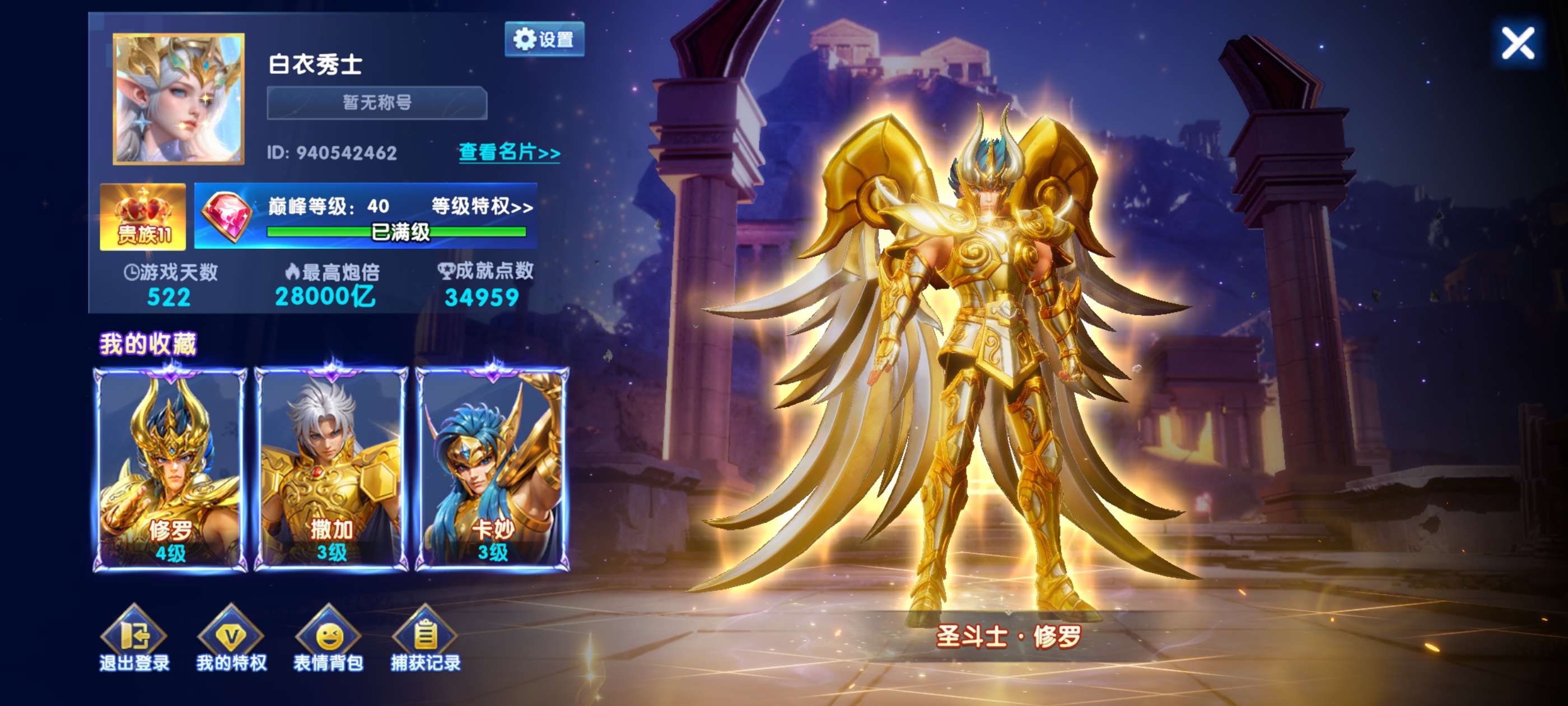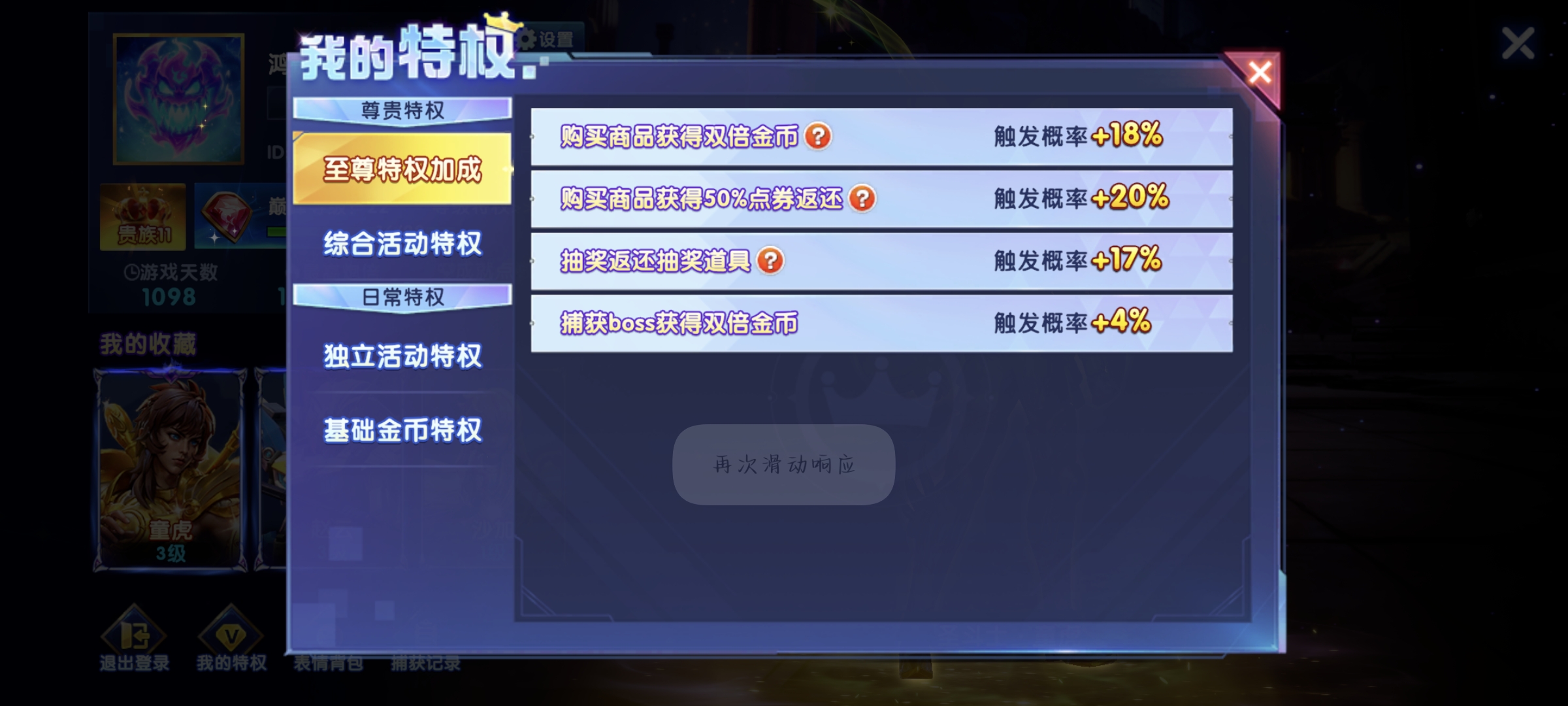出售一个双返58-98机率,圣斗士拉满,全战神全炮台,详图如下,喜欢滴滴