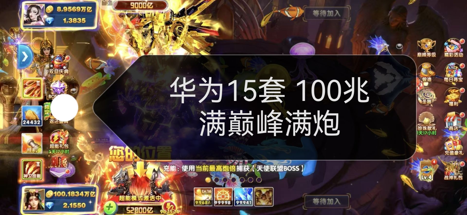 出捕鱼大作战OPPO版本成品号,V20,每周都有劵,双神卫,金币加成1356,天使、圣器神器都有,翻倍21