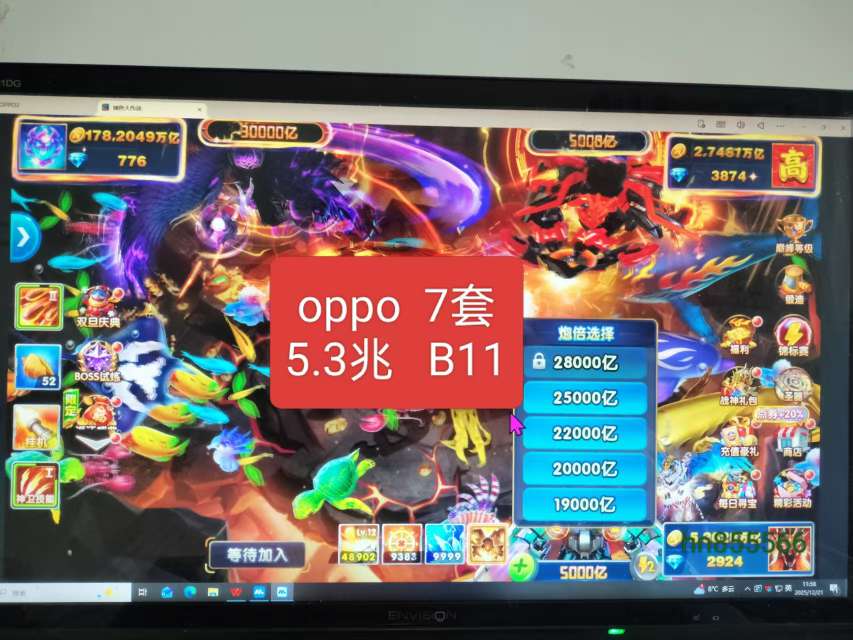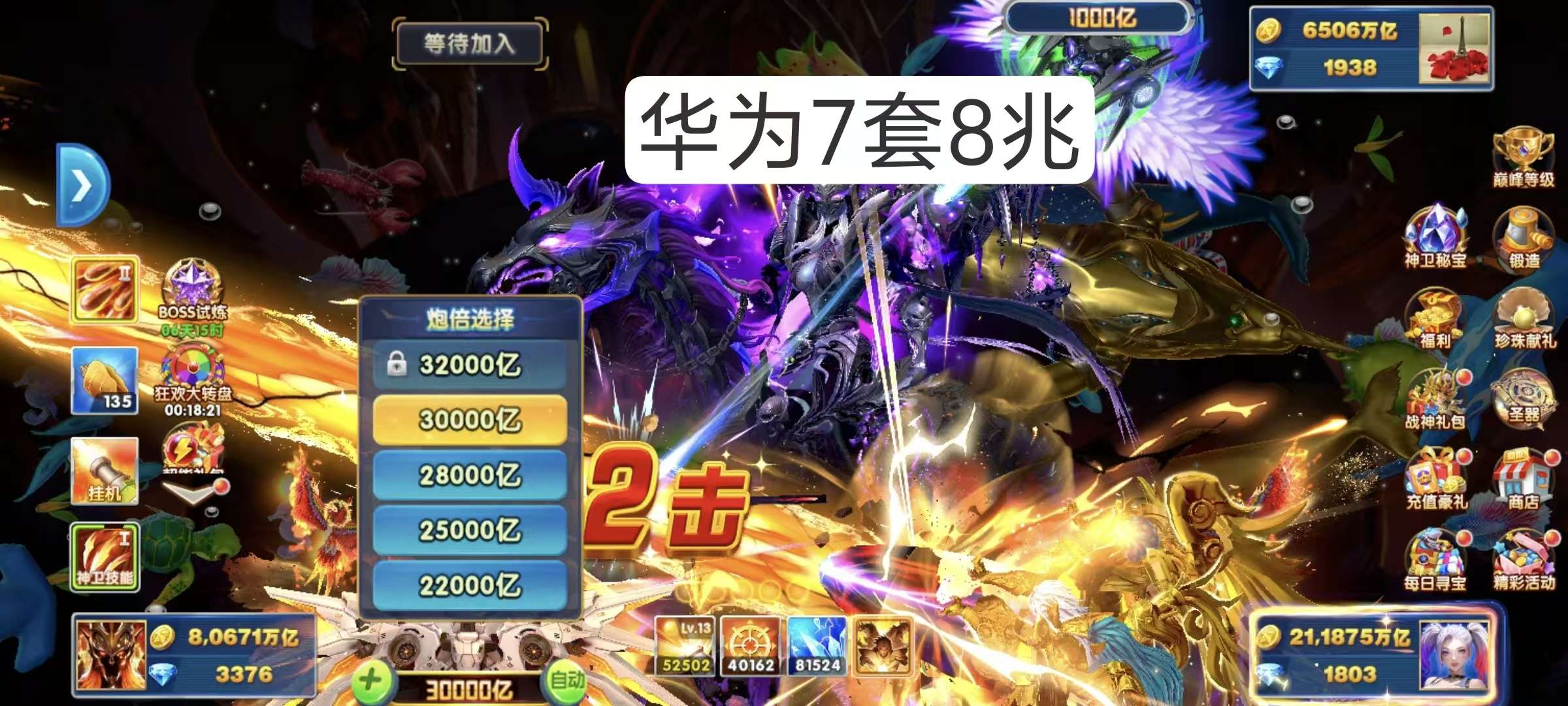 华为捕鱼大作战v20差一千多特权11现在13.5套,背包有一个同步器加成1541,纯救济1.9兆