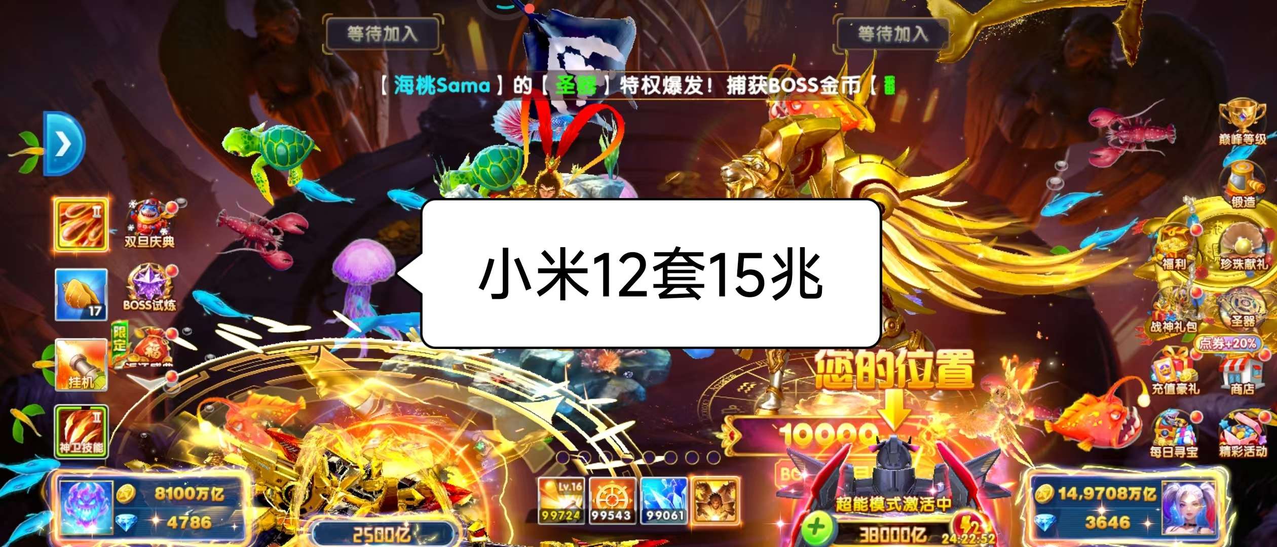 捕鱼大作战小米 v6 580 万亿,炮台 120,巅峰 26,带号出,破产号回 120