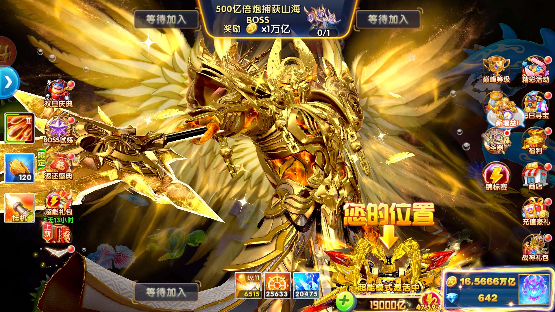 捕鱼大作战小米 v6 1665 万亿,炮台 190,巅峰 30,带号出,破产号回 200