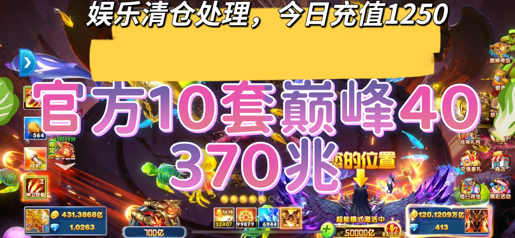 官方10套《娱乐出370兆》今日充值898,充值上分爆率,可能会好很多,来快枪手打满炮台的。