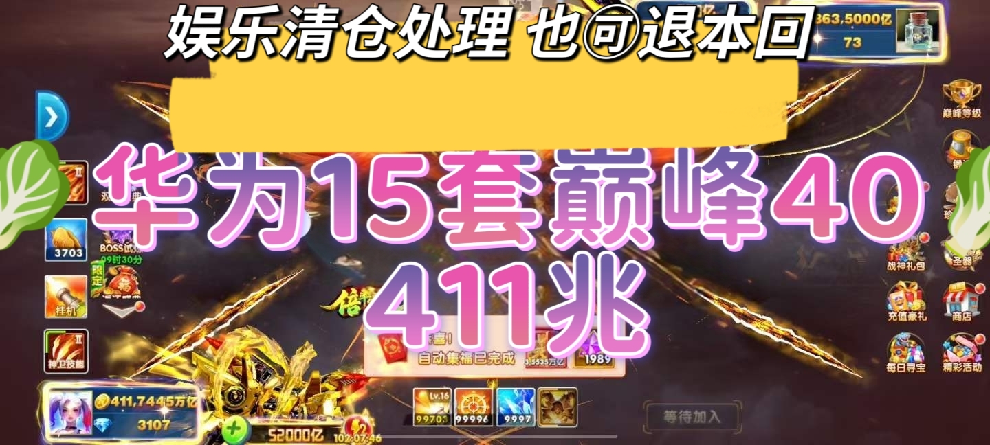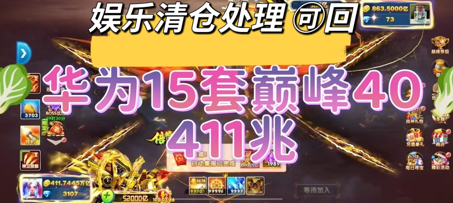 华为15套满配《娱乐出411兆》来快枪!手打满炮台的。经济又实惠呀