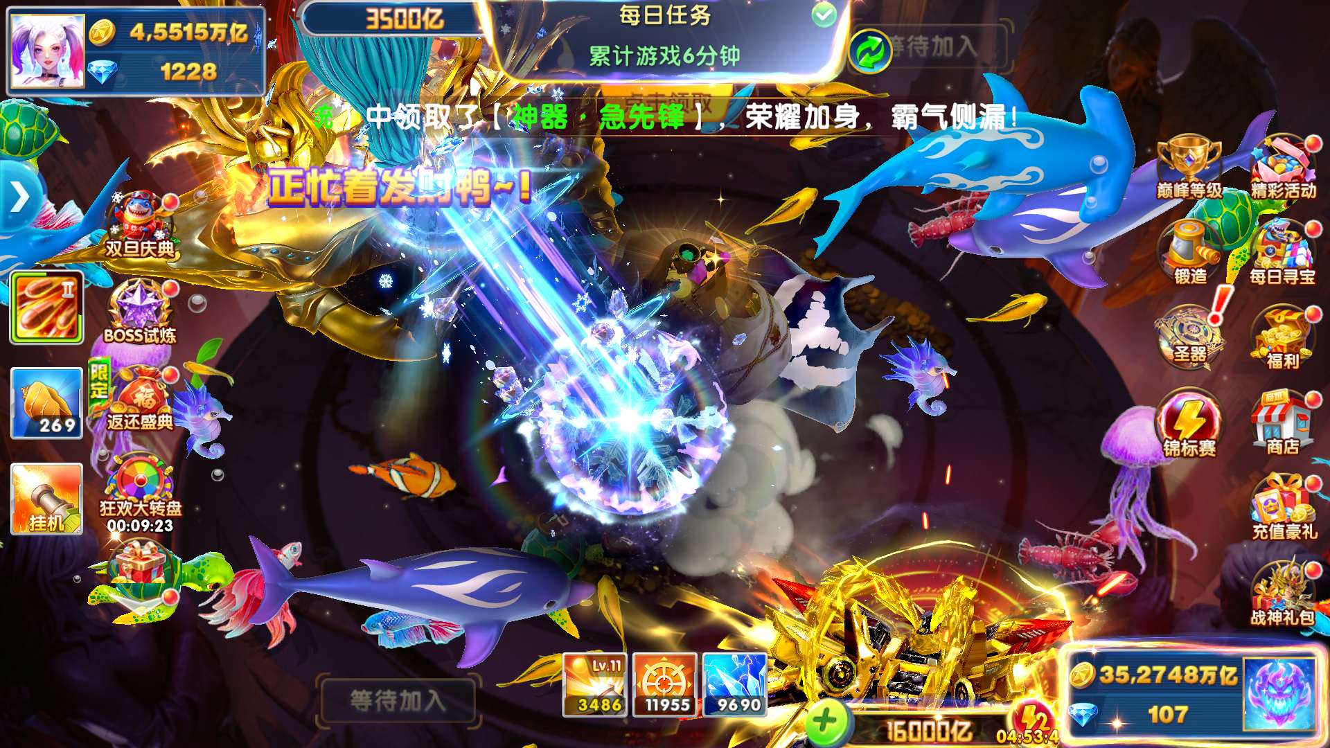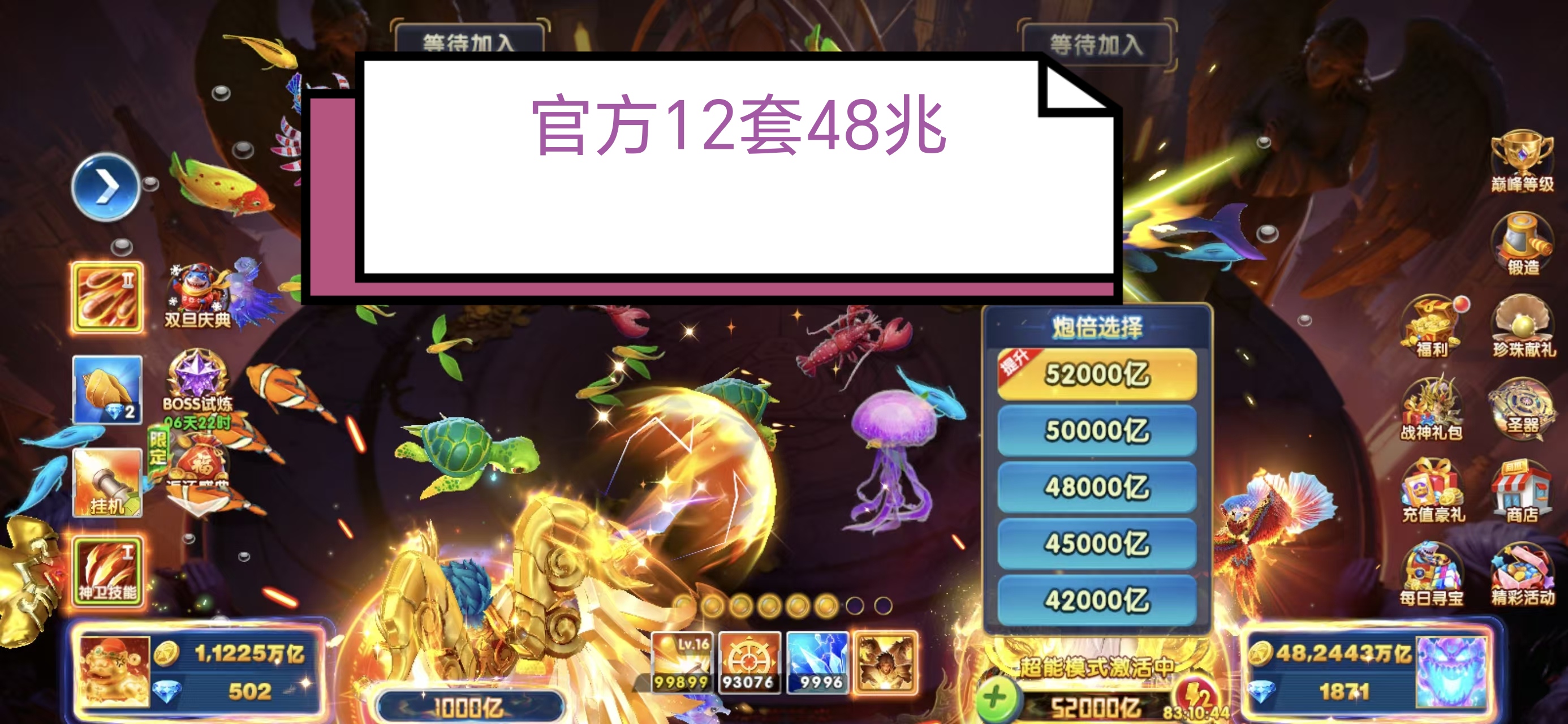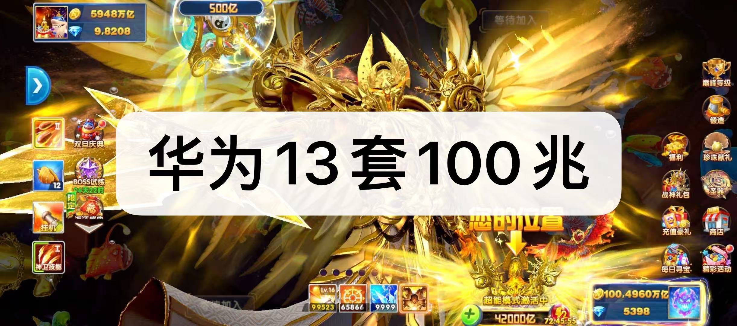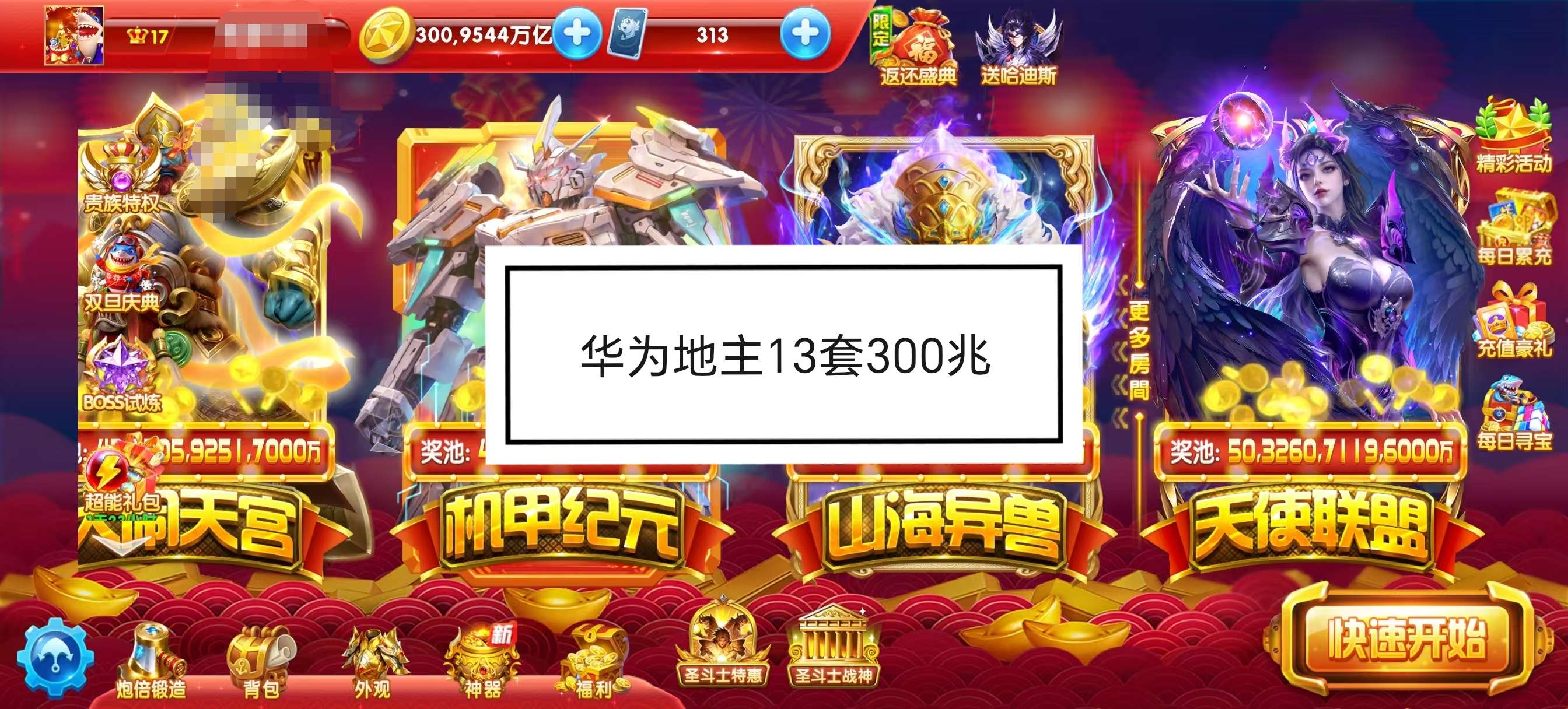 无绑v3 6000炮 16000万亿 狂暴2300+ 巅峰14 道具充足上线领双翅膀