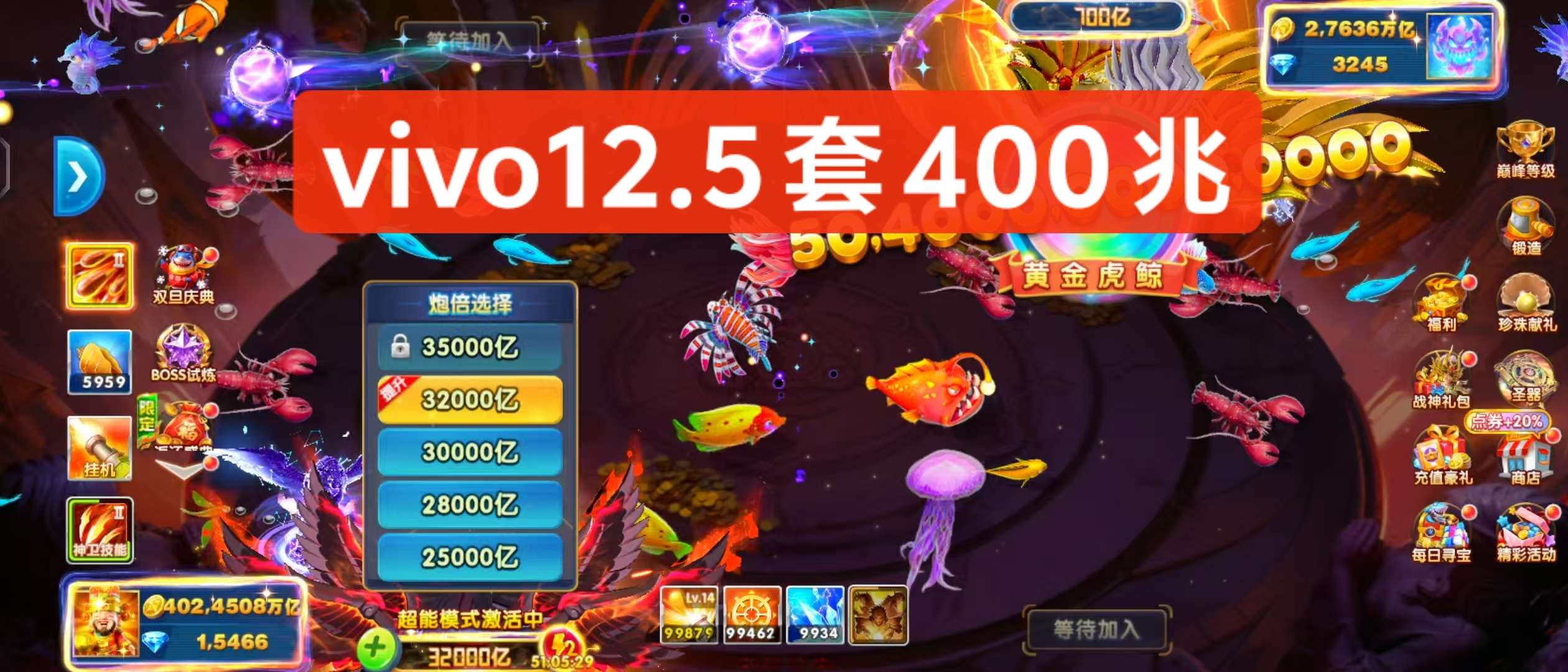 捕鱼大作战vivo渠道12.5套400兆娱乐纯玩