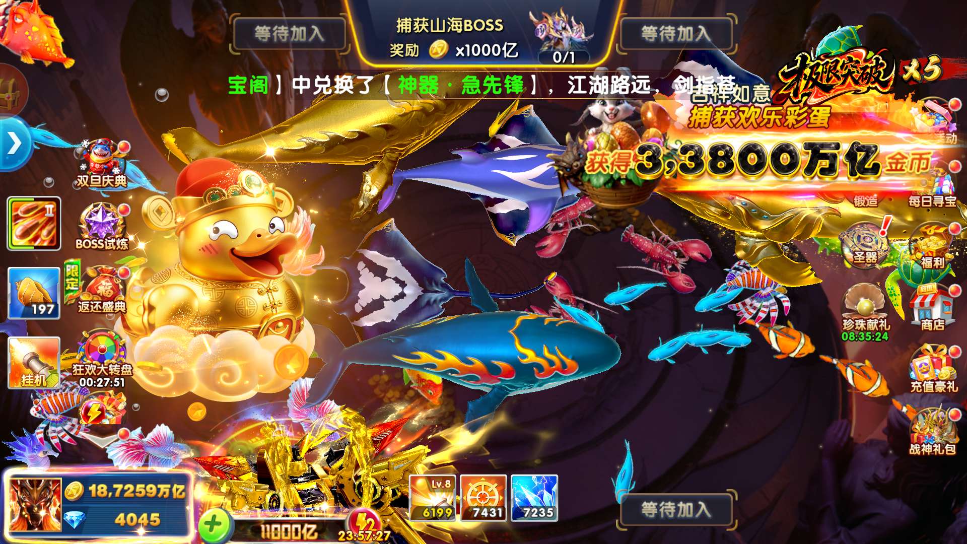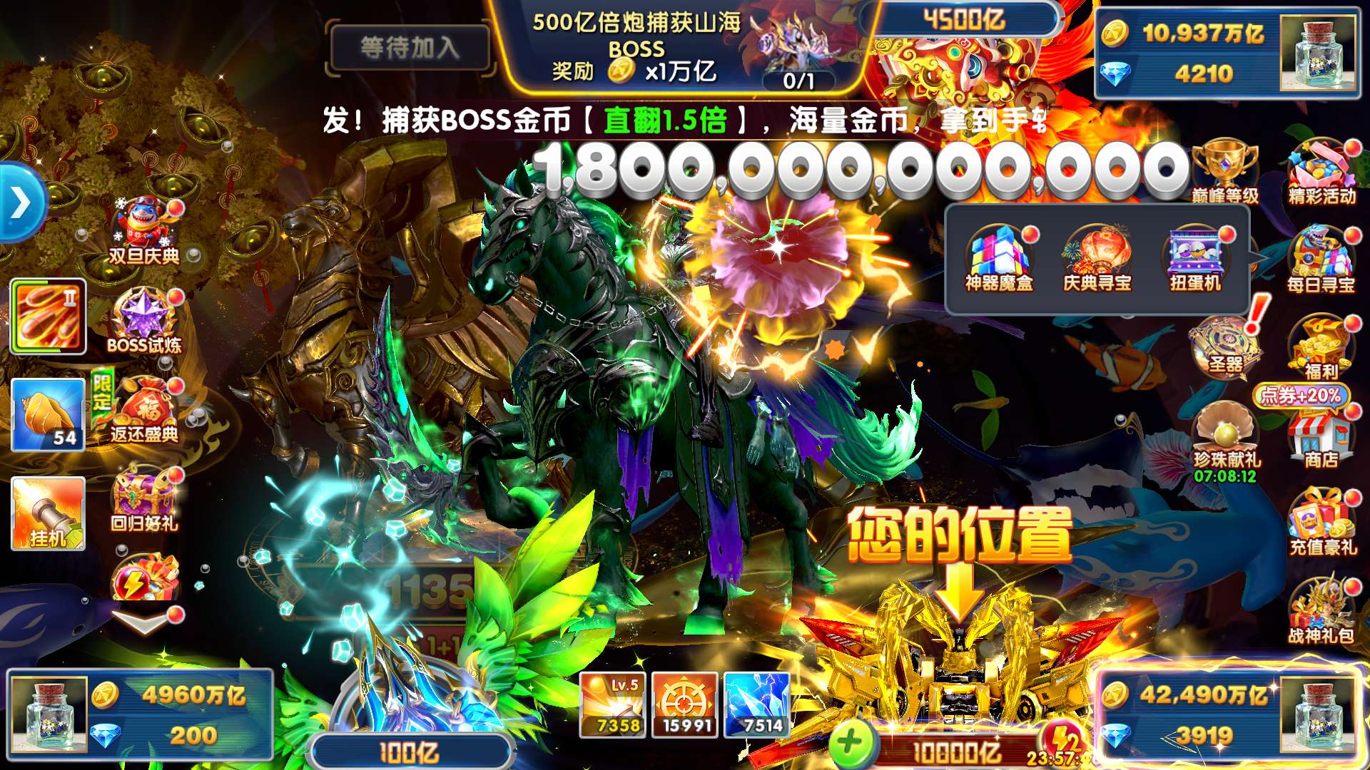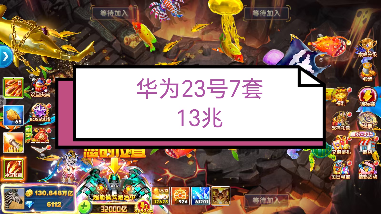 捕鱼大作战超低比例 544 万亿,炮台 130,巅峰 28,破产号回 120