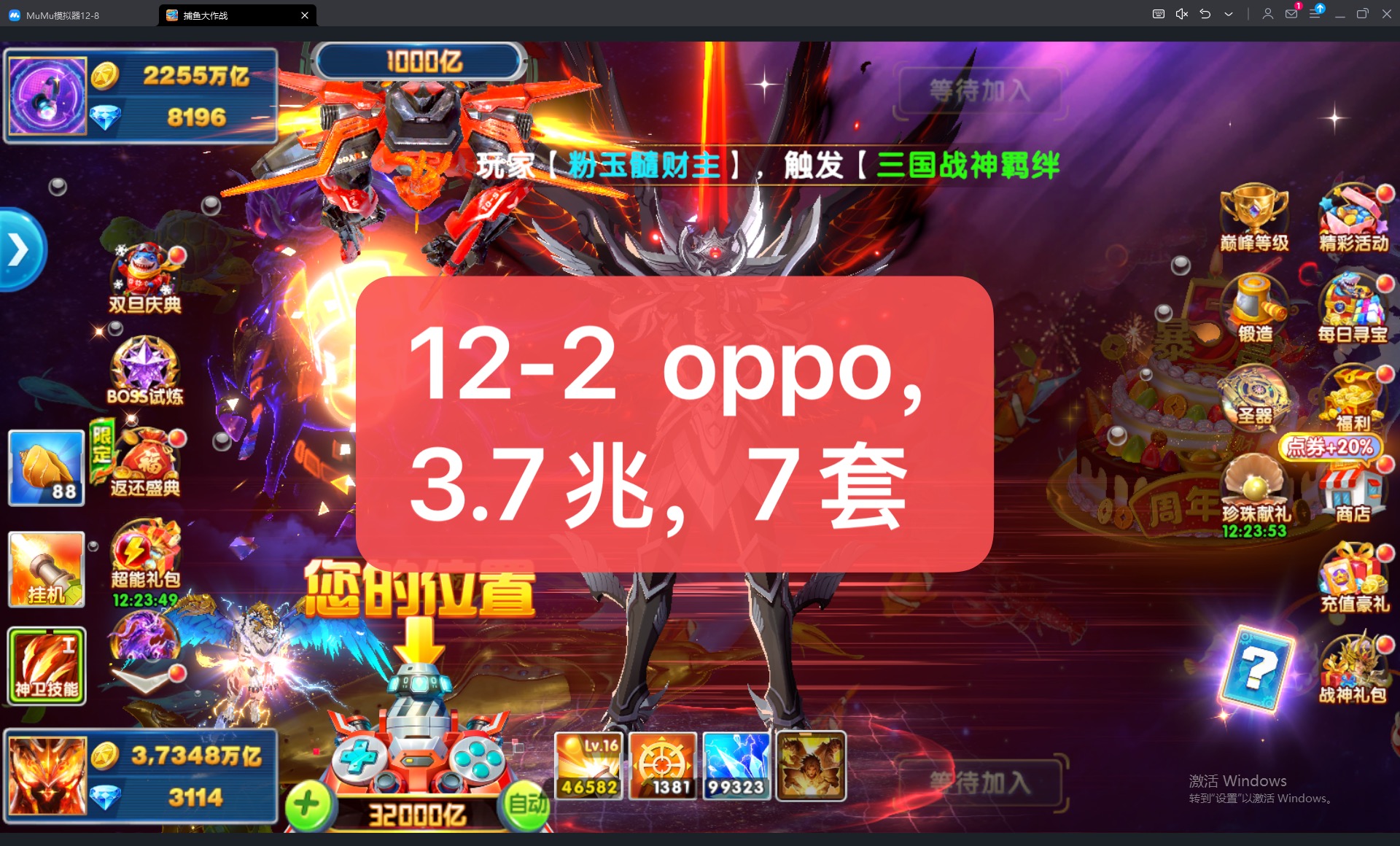 OPPO渠道捕鱼大作战顶配十五套出350兆娱乐 破产回
