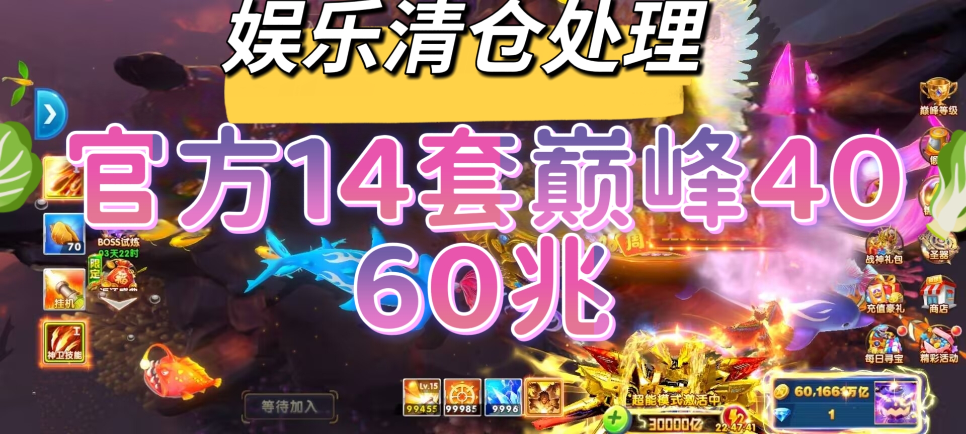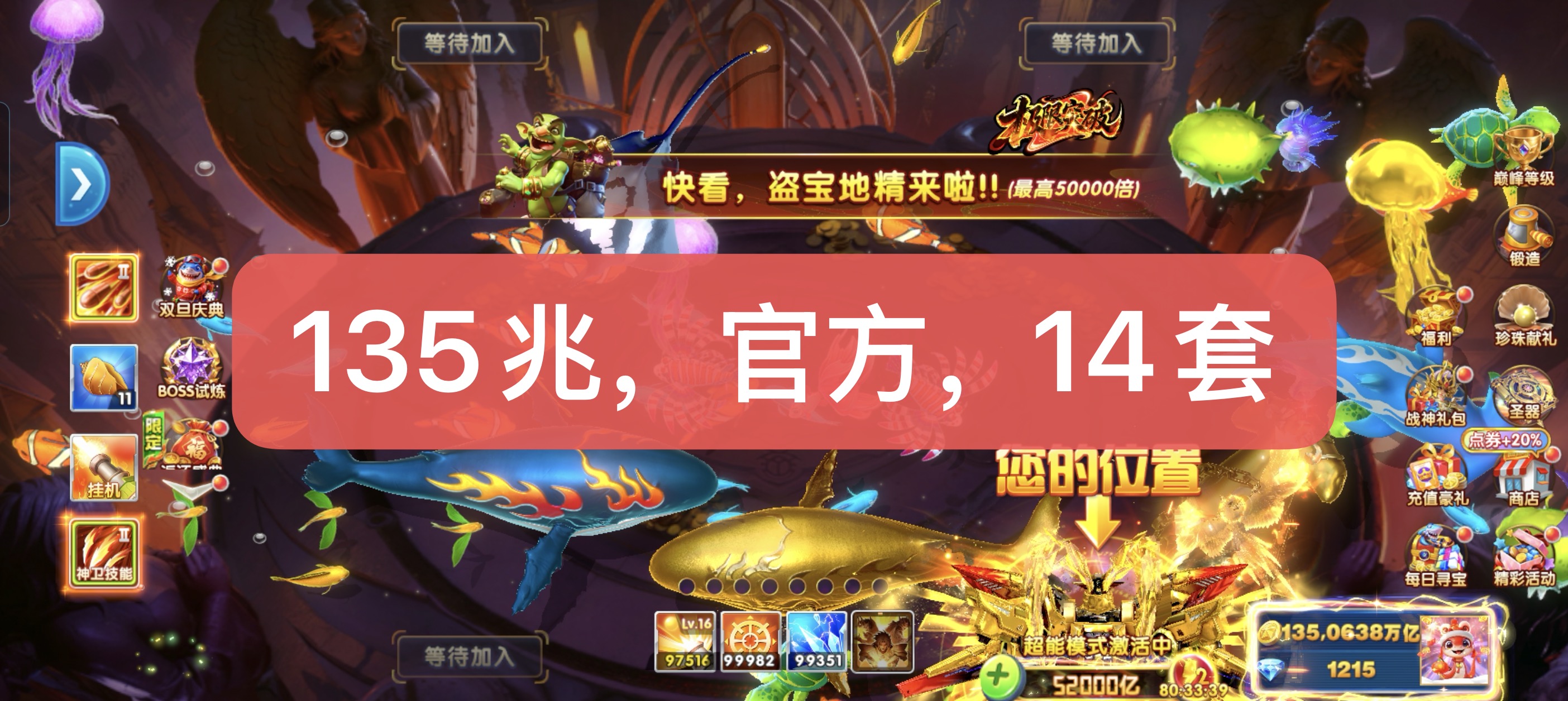 捕鱼大作战,官方10级套,爆率超高,只要有起步金币,轻松上百兆,现在可以日租,