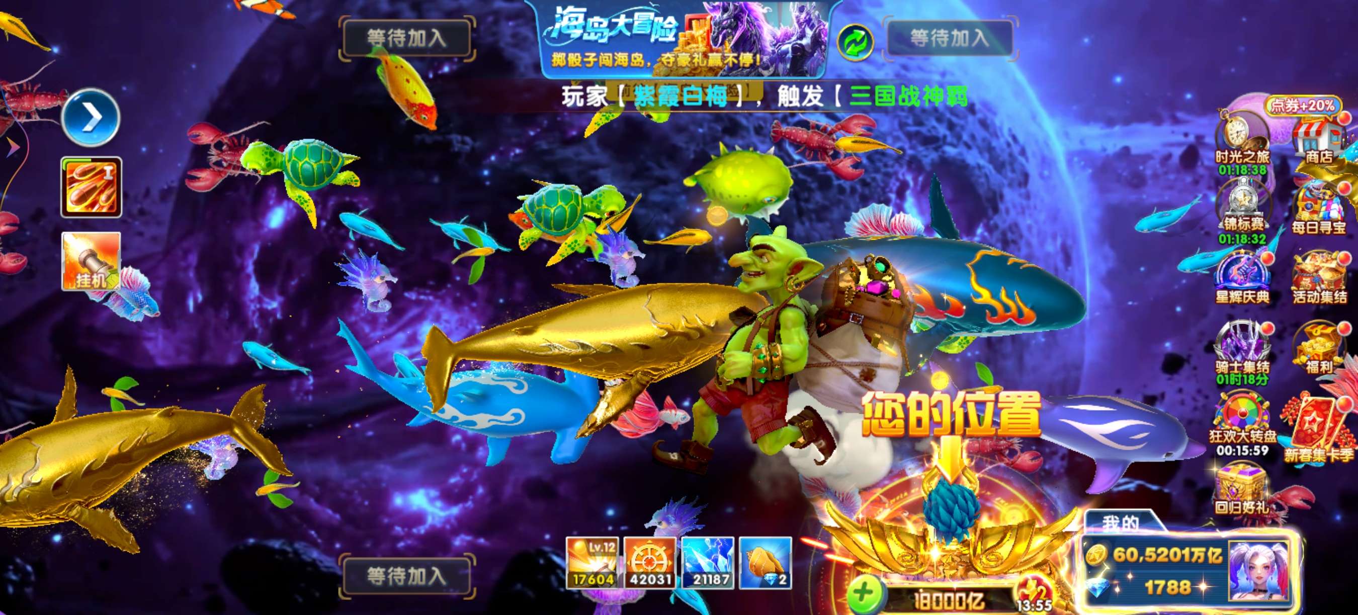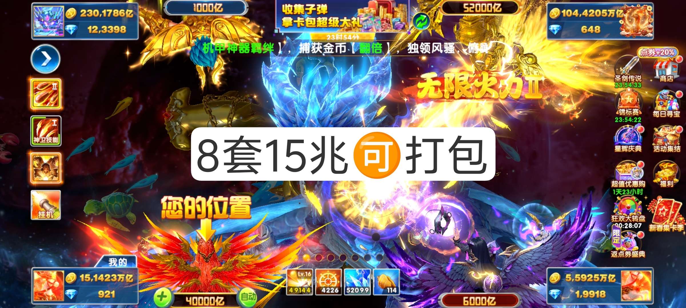 极品捕鱼大作华为版本,特权12,贵族24,纯救济3.7兆,15套高爆发,金币加成1886%,双神卫觉