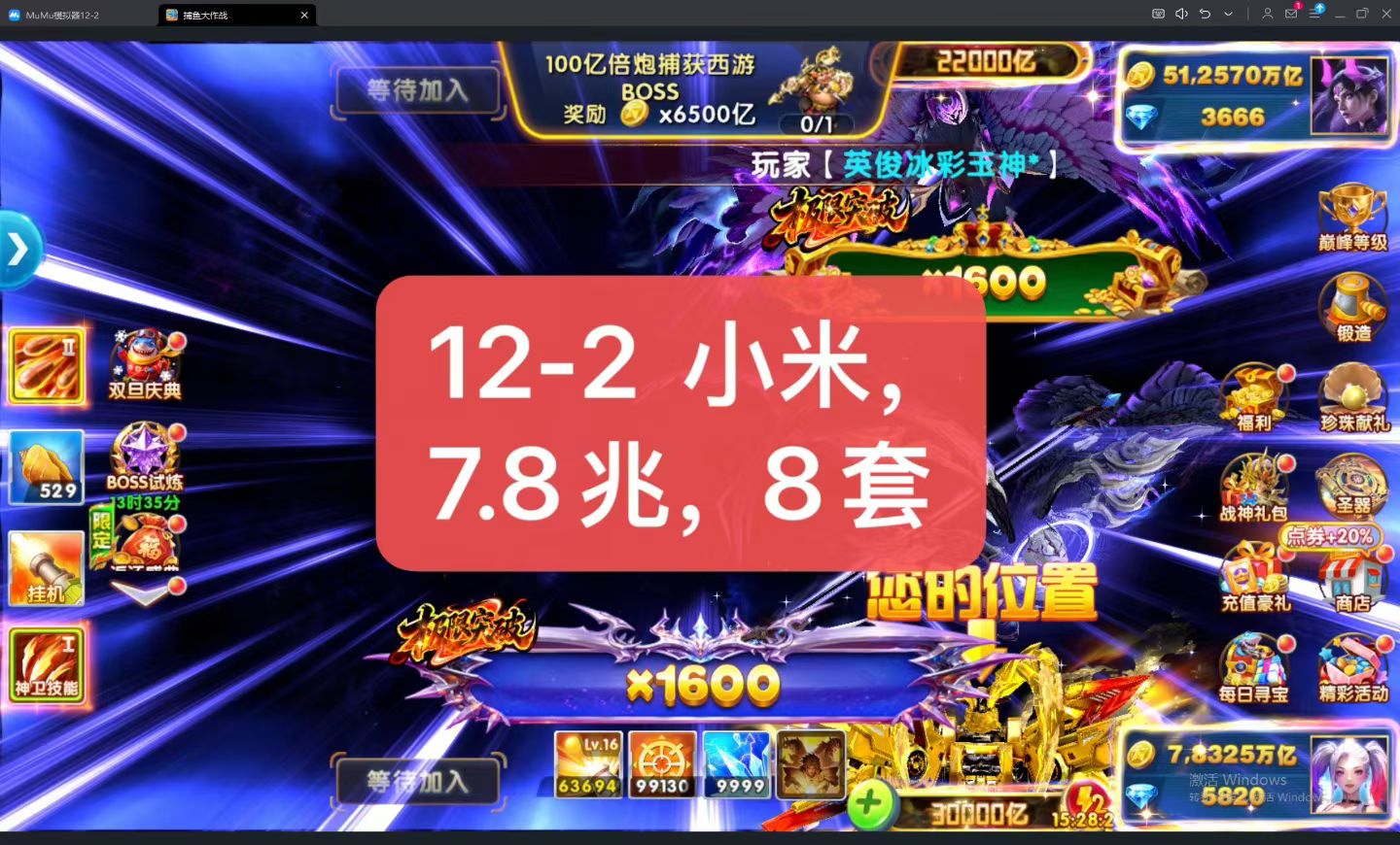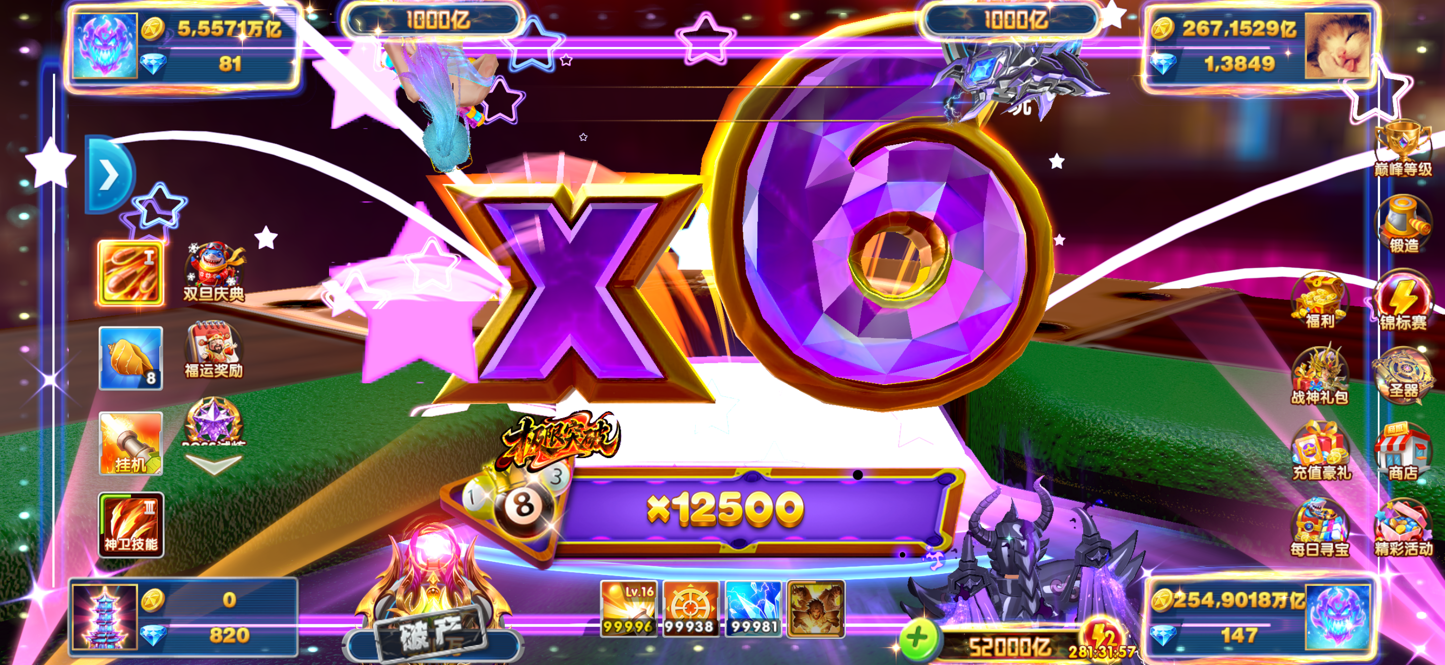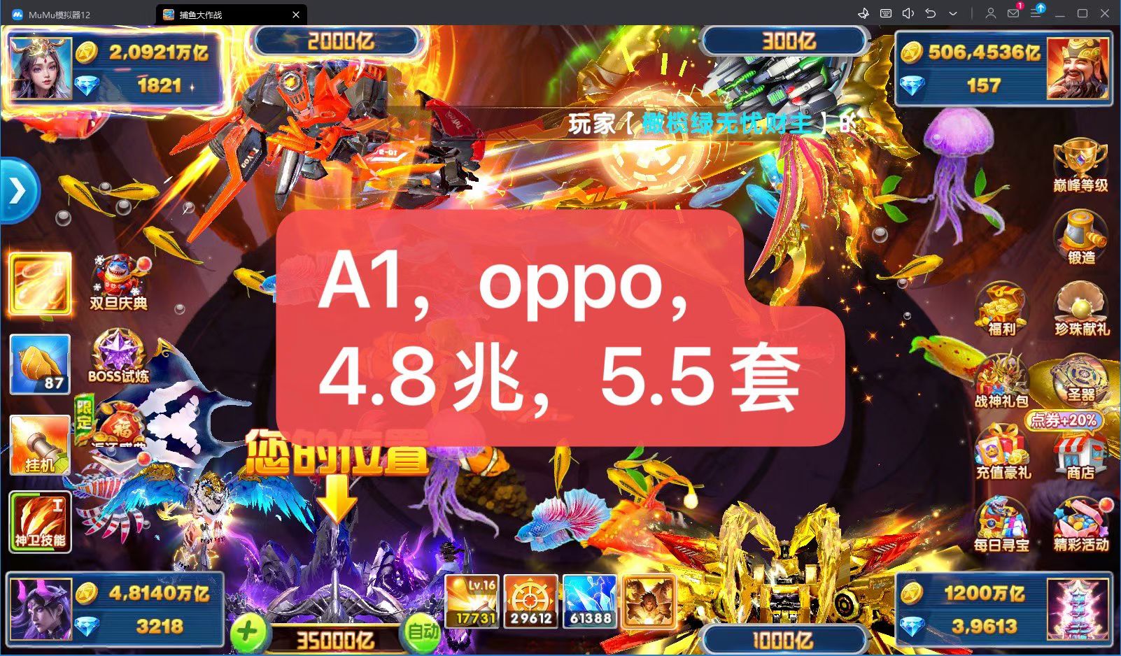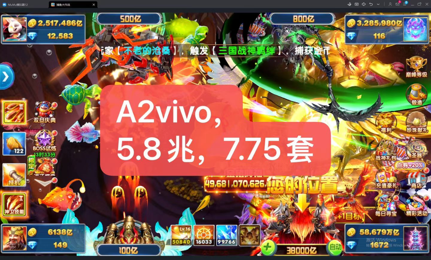 华为渠道,捕鱼大作战,贵族19,13套准14套,新三国766西游99机甲999战神987,满级朱雀